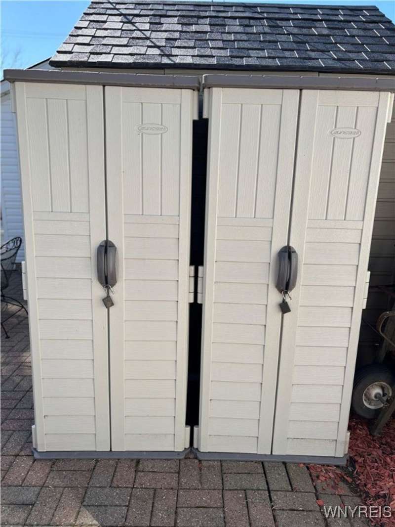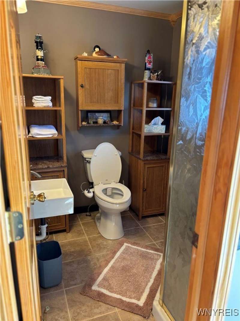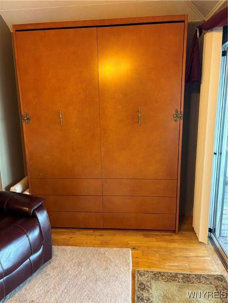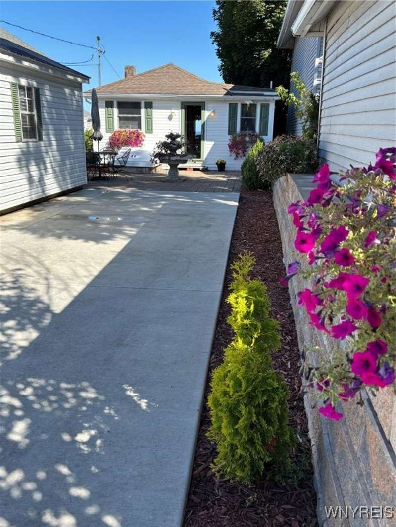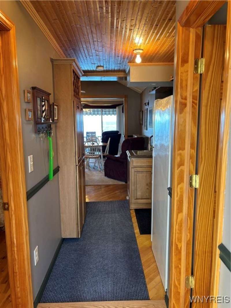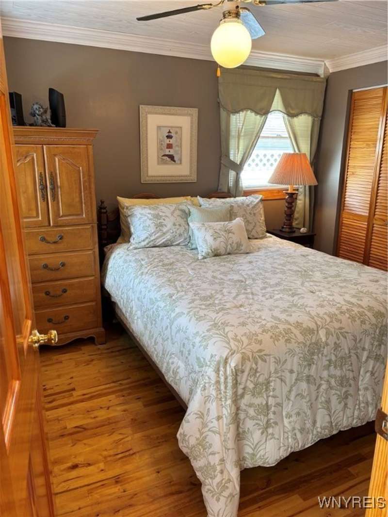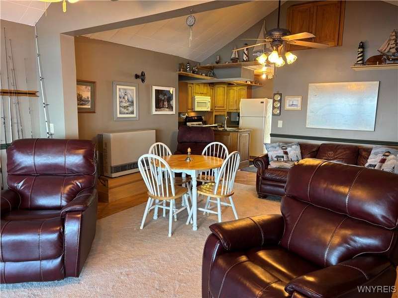 This is Bluff Living and a "Million-Dollar" view of Lake Ontario can be yours for a fraction of the cost! This year-round ranch home has all you ever want in a lakefront home. It has been spoiled...lovingly and meticulously maintained for the past 31 years. The newly added insulated 1.5 car garage (12x24) with power and workshop area and driveway lead to a private paver courtyard which has a table/chairs/storage sheds, all tastefully organized for plenty of storage. The beautiful lighted 56' retaining wall creates a beautiful ambiance. 35' of 6Ft. privacy fence on east side. Upon Entering the lead glass door a tiled foyer greets you. Pella windows in home. Left to the spacious bedroom with wood floor and 2 storage areas as well as a large closet. This is also where your washer/dryer are. To the right of the foyer is a spacious bath (6.8X5.10) with plenty of tasteful storage with a walk-in shower and heated tile floor. Continue to the kitchen which has Kraft-Maid cabinetry and solid surface counters. It's equipped with DW, Gas Range, Microwave and Refrigerator. Plenty of storage and cabinetry up lights. The bright living area with wood floors and vaulted ceiling has a dining area as well as natural gas wall heater and a gas fireplace, this LR area leads to the attached sunroom area with two 6-foot sliders. The sunroom area has a queen murphy bed for additional guest space. The view from LR/Sunroom area is fantastic. The 12x24 well maintained deck, with included gas grill and stairs lead to a grassy area overlooking the lake. The deck has a Kohler awning measuring 12x15. The paver walkway from the gas grill area lead to a beautiful paver walkway to the spacious courtyard to the front of the home. Every inch of this home has been tended to. Come see it - we think you will agree.
