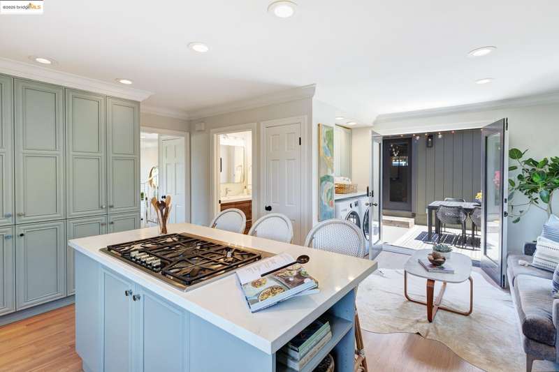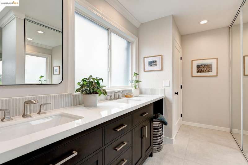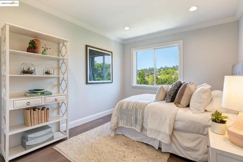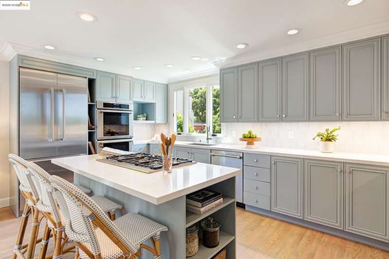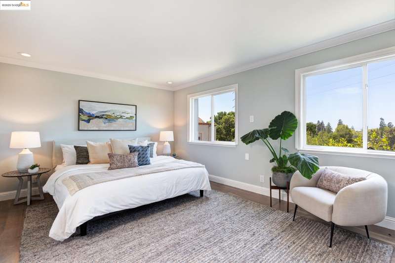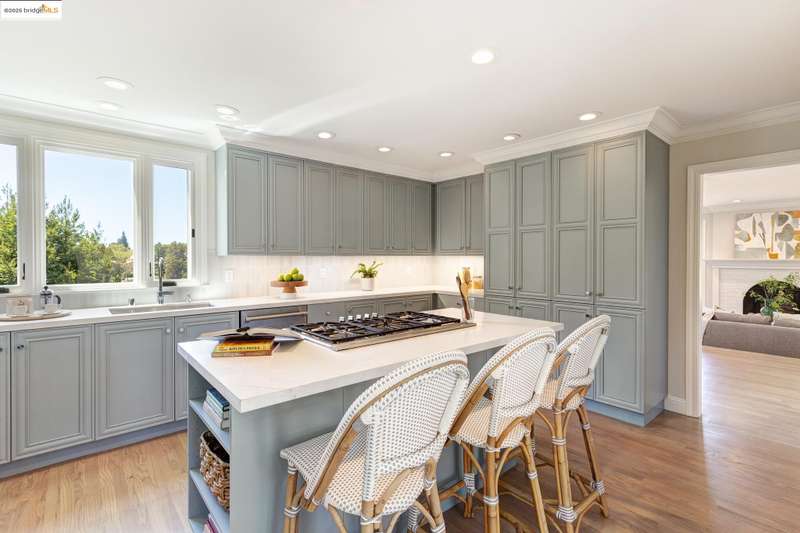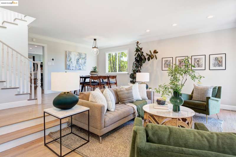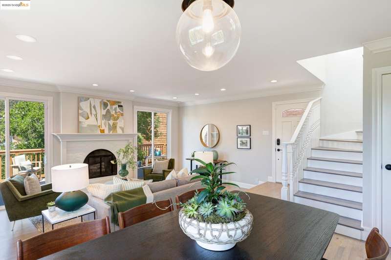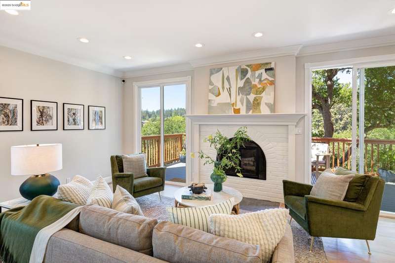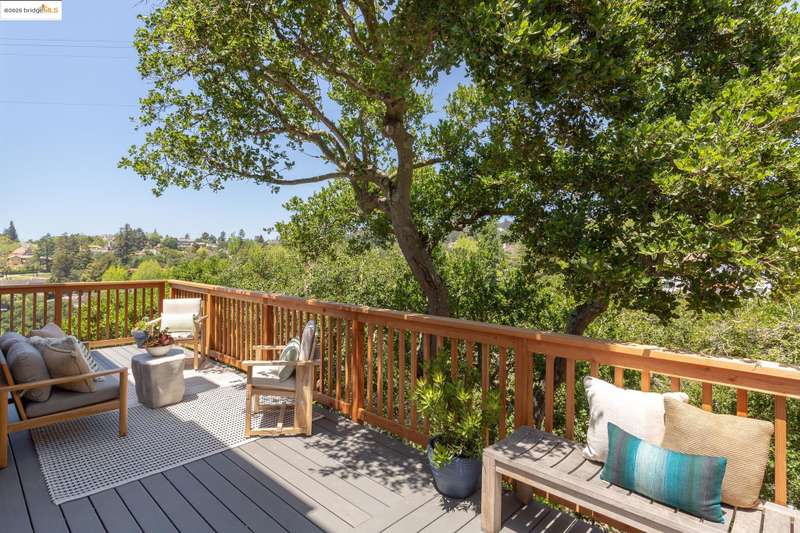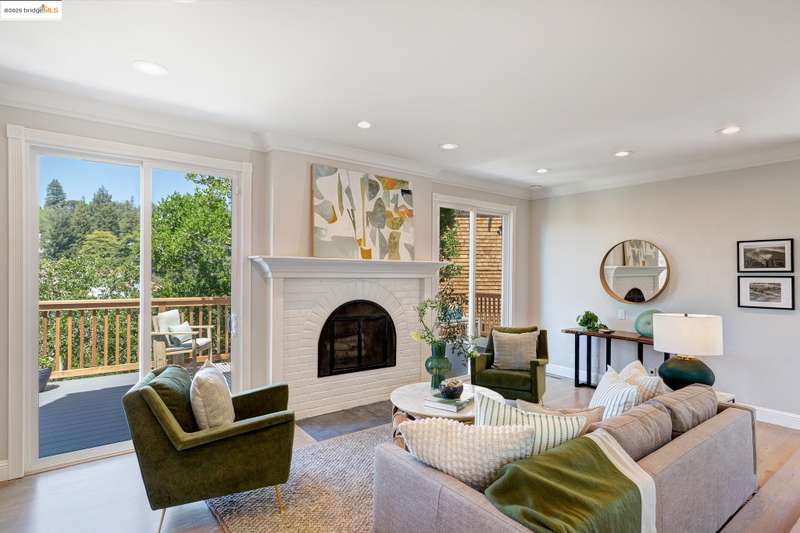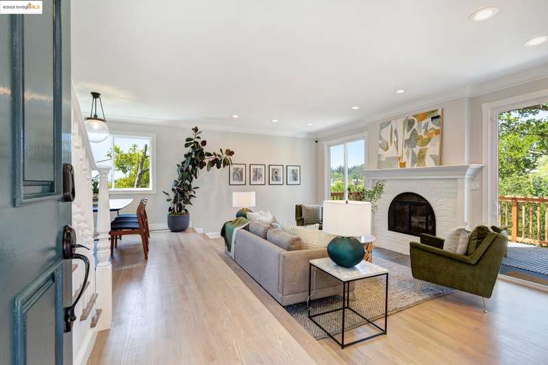 City life melts away on this idyllic PIEDMONT cul-de-sac where you'll enjoy all of Piedmont's amenities including their top-rated schools. Set back from the street, this move-in ready property feels instantly welcoming and private. Built in 1965, this beautifully updated, sun-filled home blends Traditional pedigree with modern aesthetics. The living room stuns with a central fireplace and two sets of glass doors inviting you onto the large deck for enviable indoor-outdoor living. Artfully refinished hardwood floors add timeless beauty throughout. The seamless connection between large public rooms and the updated chef's kitchen, with French doors to a private patio, makes entertaining a breeze. Extra space off the kitchen offers versatility as a cozy hangout, home office, or kids' corner for homework, while an updated half bath and convenient laundry complete the main floor. Upstairs, verdant views and natural light grace two bedrooms, a hall bath, and spacious primary suite. The primary bath features a large walk-in shower, an extended double vanity, and abundant closet space. Close to Glenview shops & dining, Montclair Village and the Hampton Sports Field. Freeway access is nearby as well as the SF express bus stop.