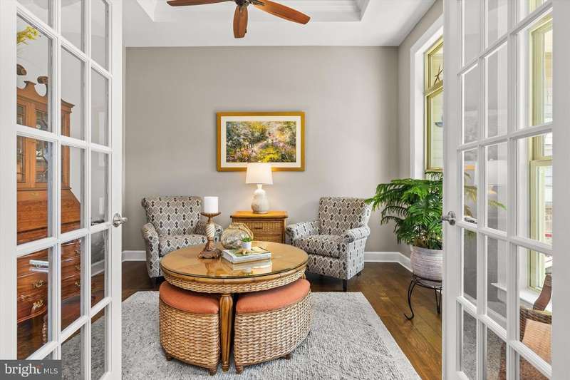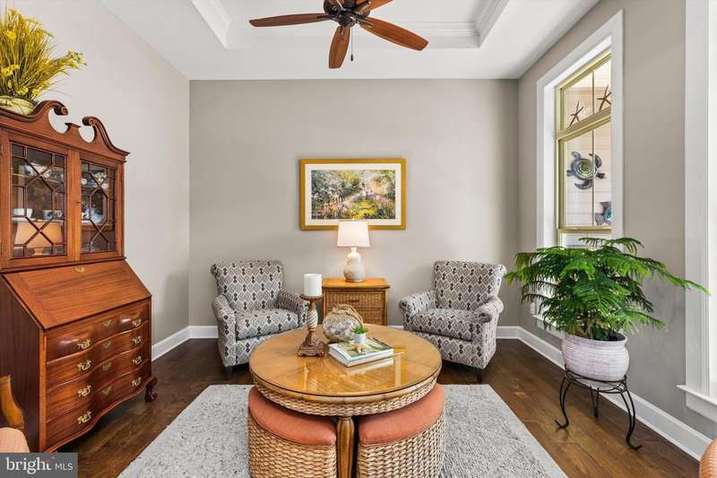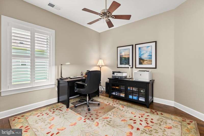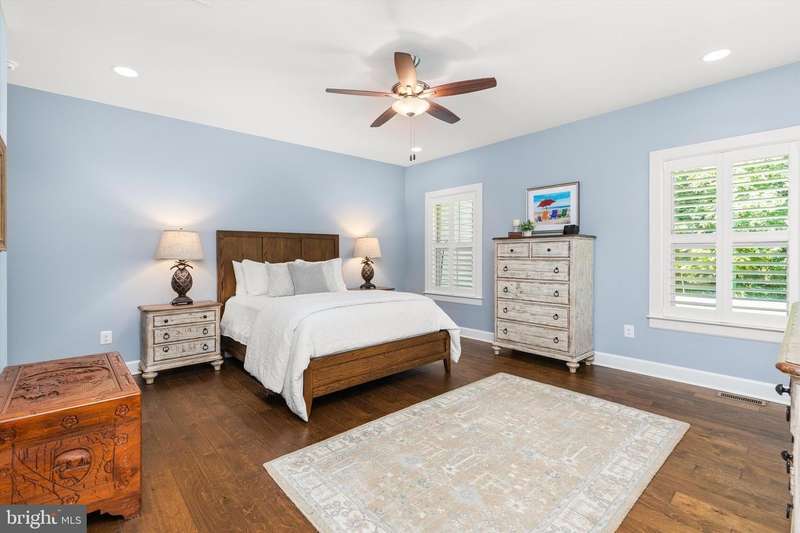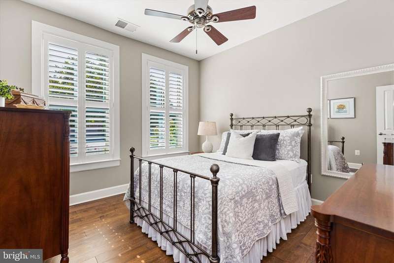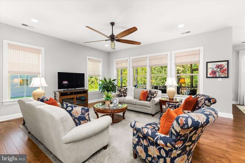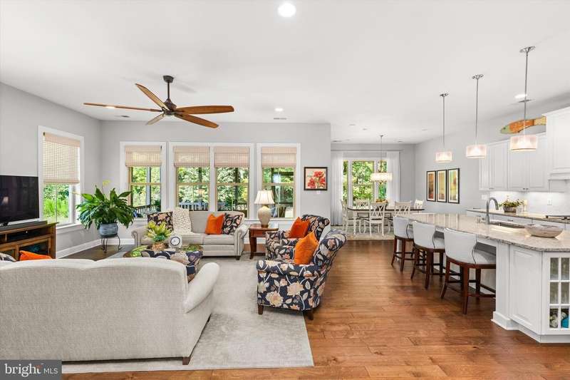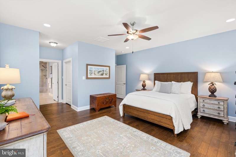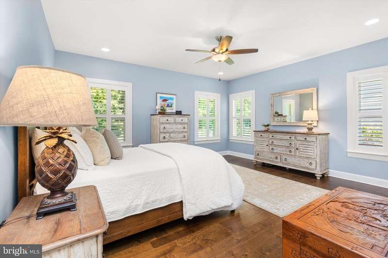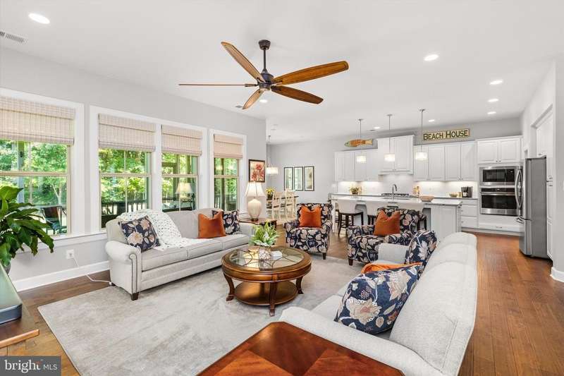 Nestled in the sought-after community of Batson Creek, this lovely coastal contemporary home blends luxury, comfort, and convenience. Built in 2018 and meticulously maintained, the residence offers an ideal floor plan with 4 bedrooms and 3 baths, including a first floor primary suite and attached 2 car garage with thoughtful upgrades throughout. Inside, the open-concept layout is filled with natural light and accented by beautiful plantation shutters and engineered hardwood floors throughout both levels. The gourmet kitchen offers upgraded countertops, stainless steel appliances, a spacious island, and seamless flow into the dining and living areas...perfect for entertaining. A separate den with French doors and tray ceiling provides the ideal flex space for a study, den, or dining room. The first floor primary suite is a private retreat with his-and-her closets and a ensuite bath featuring dual vanities, walk-in shower, privacy room, and linen closet. Two additional guest rooms and a guest bath are also located on the main level for comfort and convenience. Upstairs, you'll find a fourth bedroom, full bath, large walk-in storage closet, and a spacious family room for added living space. Outdoor living is equally impressive with a welcoming front porch, expansive screened porch backing to mature woods, rear deck, and beautifully landscaped grounds with mature plantings on all sides. Custom paver accents line the enlarged driveway, while a tasteful enclosure keeps trash bins tucked away. Additional features include tankless hot water heater, dual fuel heat pump, ceiling fans throughout, gutter guards, underground pop-up drains, and irrigation system. The Batson Creek community offers outstanding amenities, including a resort-style outdoor pool with ocean access and plenty of lounging space, an outdoor fireplace, a nicely appointed fitness center, and a clubhouse with inviting gathering spaces. Conveniently located between Bethany and Fenwick, this home provides easy access to the beach, shopping, and restaurants. This property offers the perfect balance of style, comfort, and community...an exceptional opportunity in Batson Creek.