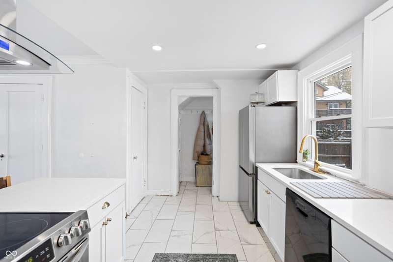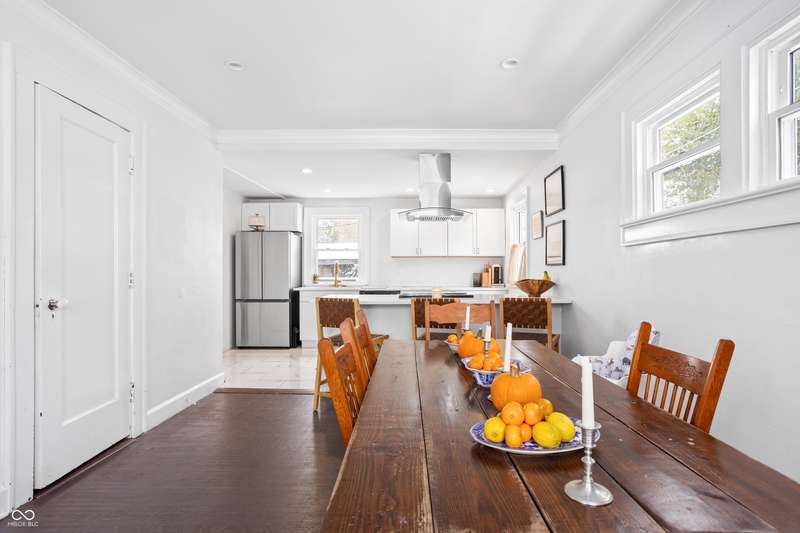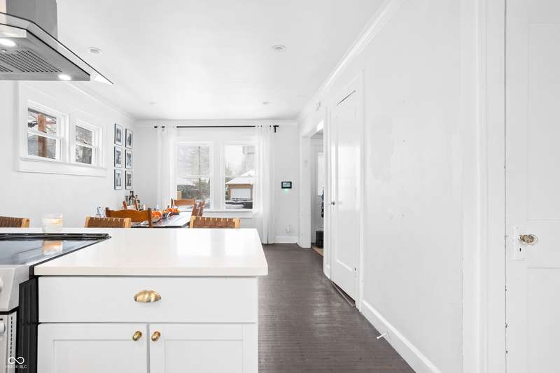 Located at 821 E 36th ST, INDIANAPOLIS, IN, this single-family residence offers an inviting home that is ready to move in. The living room is a welcoming space, anchored by a fireplace, and enhanced by crown molding that adds a touch of architectural elegance. The kitchen is designed for both beauty and functionality, featuring shaker cabinets that offer ample storage and stone countertops that provide a stylish and durable workspace; the kitchen peninsula creates an inviting area for casual dining and conversation. The island range hood adds a modern focal point, while the stovetop stands ready to help you create culinary masterpieces, and crown molding ties the room together with sophisticated detail. One of the bathrooms features a tiled walk in shower, offering a spa-like experience in the comfort of your own home. Imagine starting or ending your day in this beautifully appointed space. This property offers a front porch and a back patio, providing opportunities to enjoy the outdoors in various ways; its gambrel roof adds character and charm to the exterior. With two full bathrooms and one half bathroom, along with three bedrooms, this home with 1488 square feet on the main and upper levels, provides comfortable living spaces for all. Built in 1922, this delightful property encapsulates the perfect blend of classic charm and modern convenience.