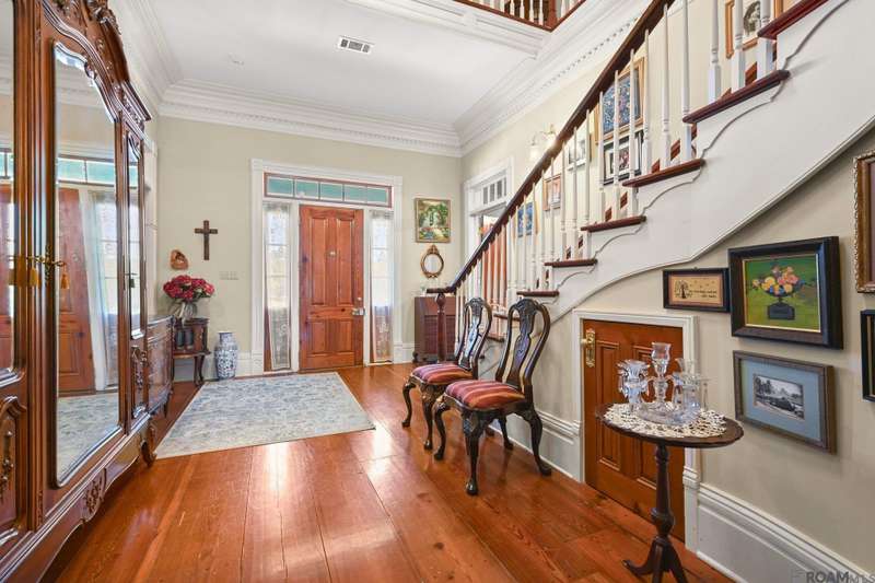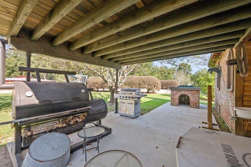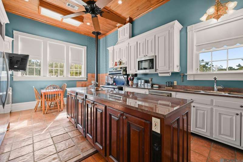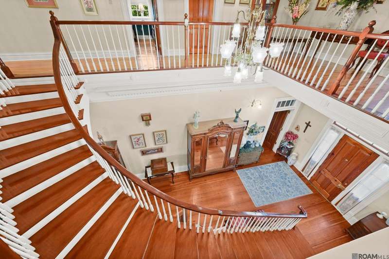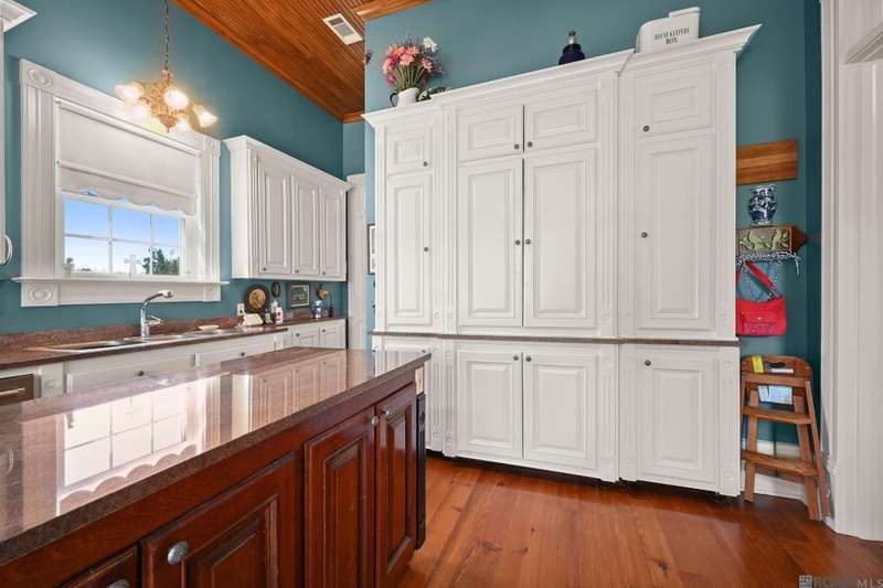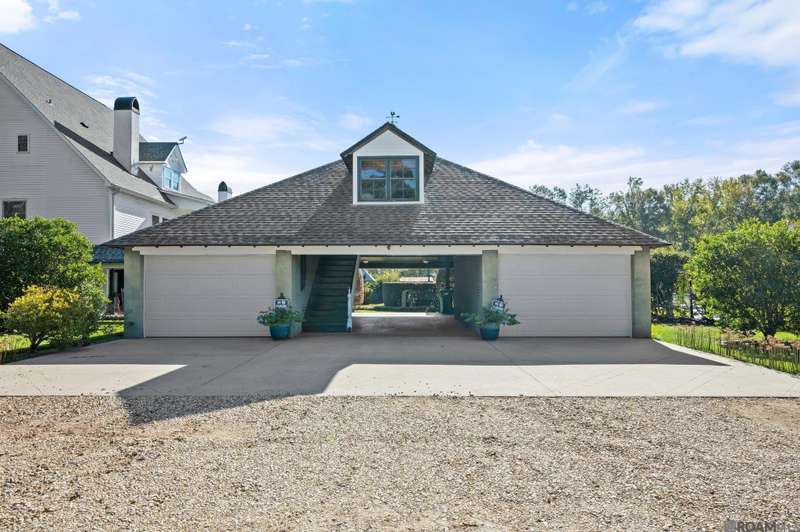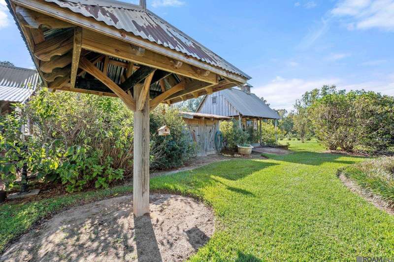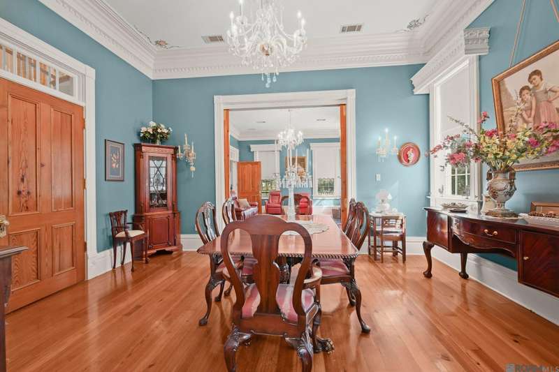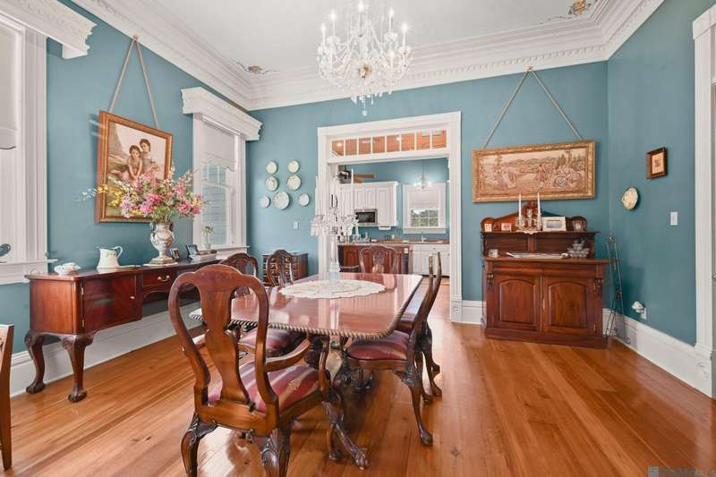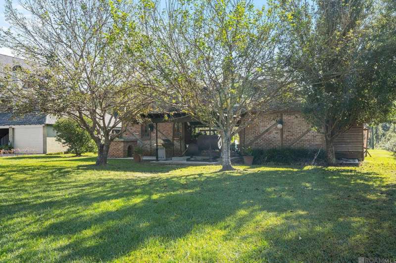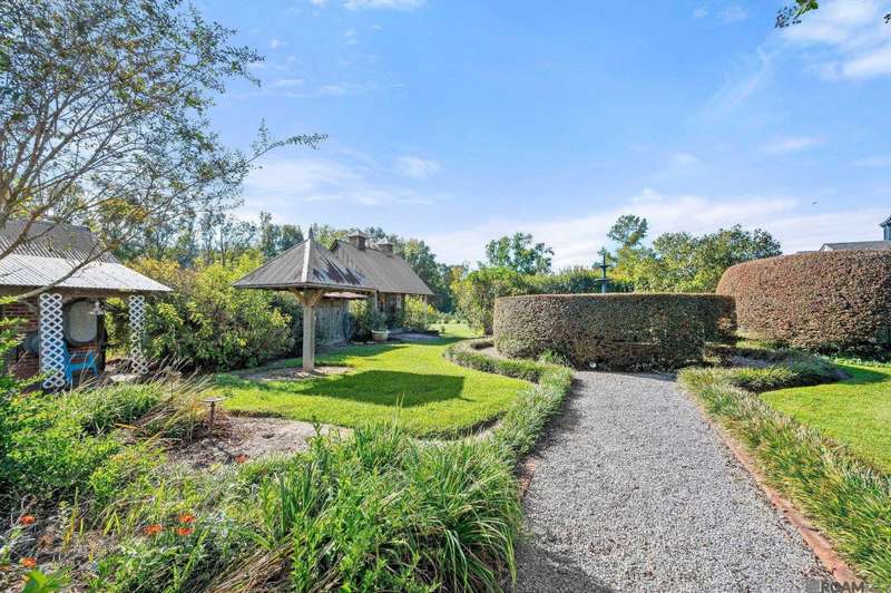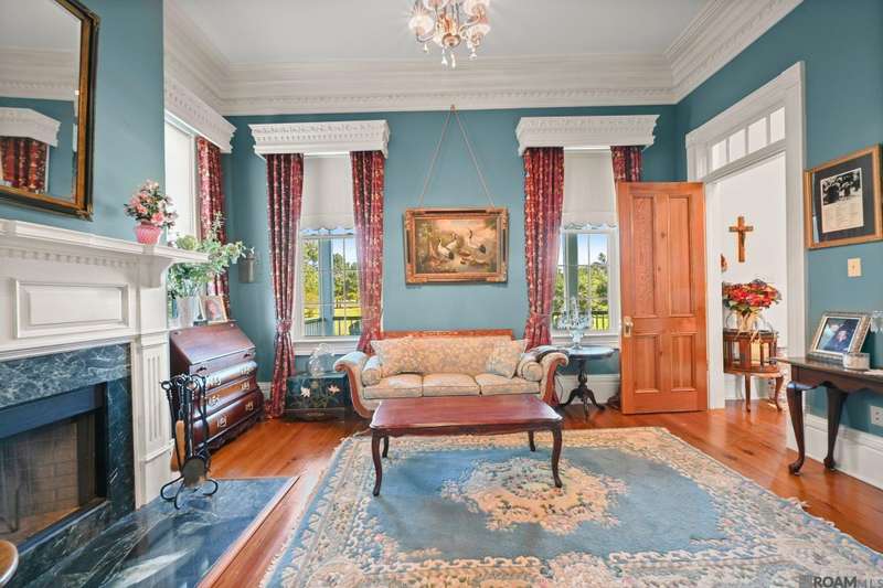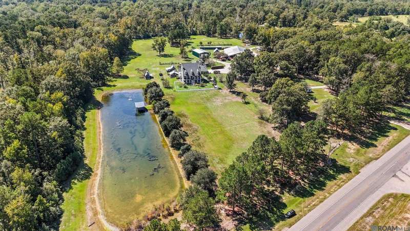 Nestled in Pine Grove's tranquil countryside, this sprawling 6,000+ sqft Acadian Style home offers grand living and natural beauty combined with the comfort of a family home. Attention to detail is evident throughout, from stacked crown molding and antique chandeliers to three fireplaces and wood and brick floors. The large kitchen overlooks the rear and side grounds, while a grand curved staircase leads to the third floor. The six bedrooms, each with ample closet space, and multiple living areas ensure comfort and privacy. The primary bedroom features an ensuite bathroom with a soaking tub, separate shower, and walk-in closet. Outside, the pool area includes an outdoor pavilion with a kitchen, dining and living space, and a fireplace, perfect for entertaining. Auxiliary buildings include a bath and outdoor shower near the pool and formal garden. The semi-detached garage has two enclosed bays and a center carport. A pond borders the left side of the home, adding to the serene setting. This luxurious property offers a peaceful country lifestyle amidst stunning natural surroundings.
