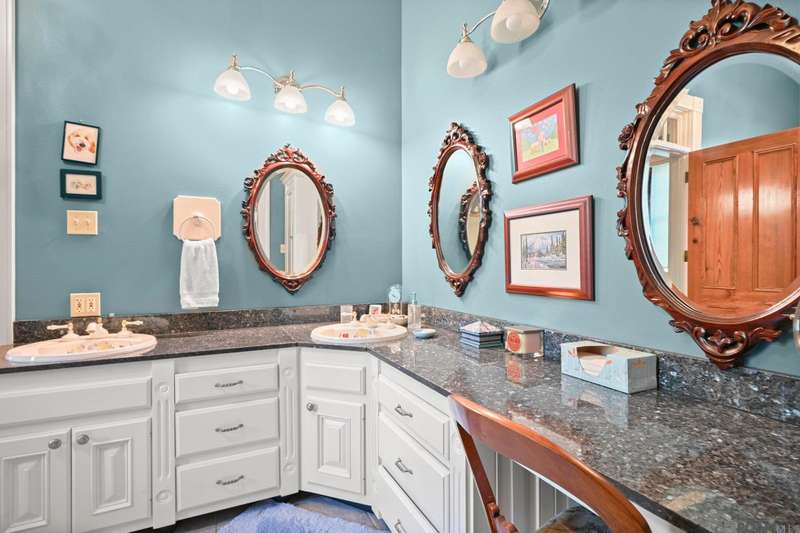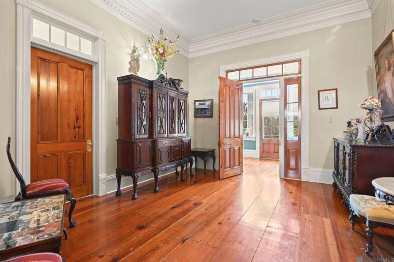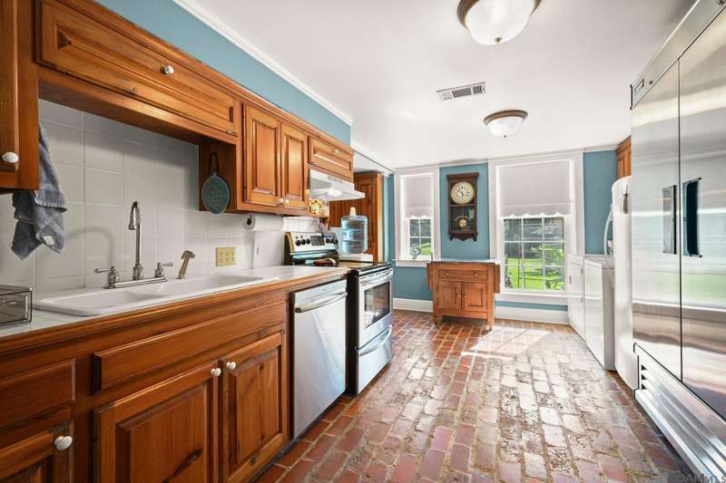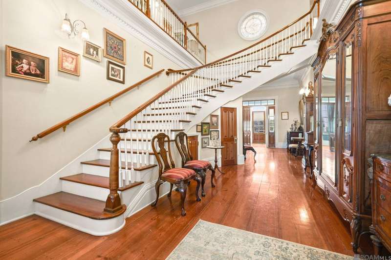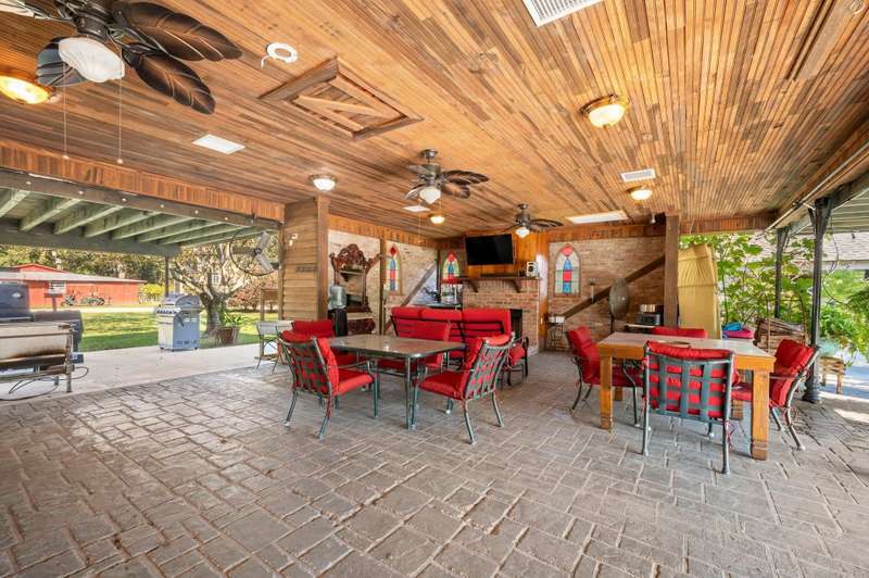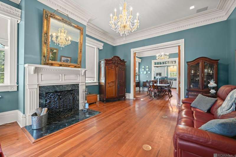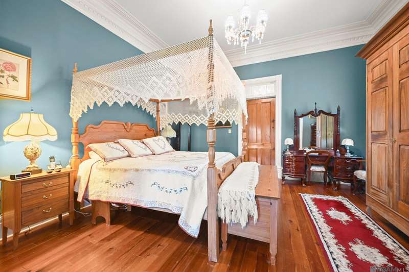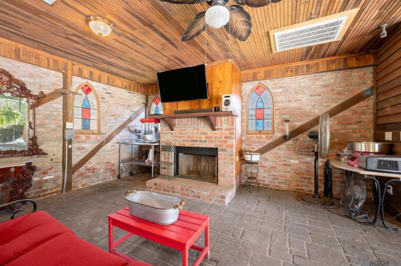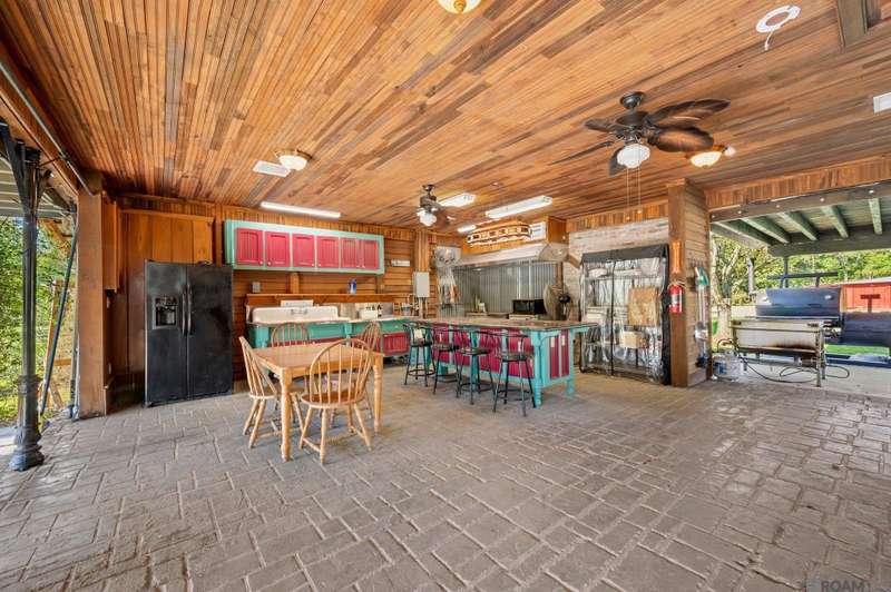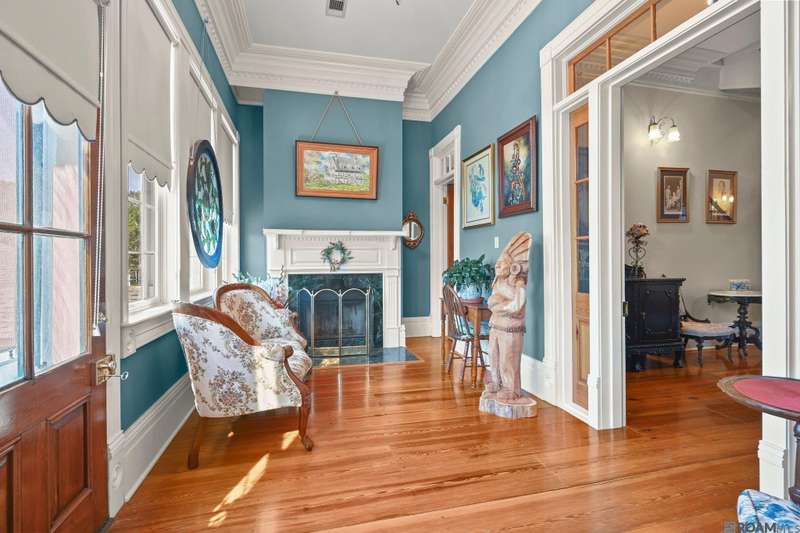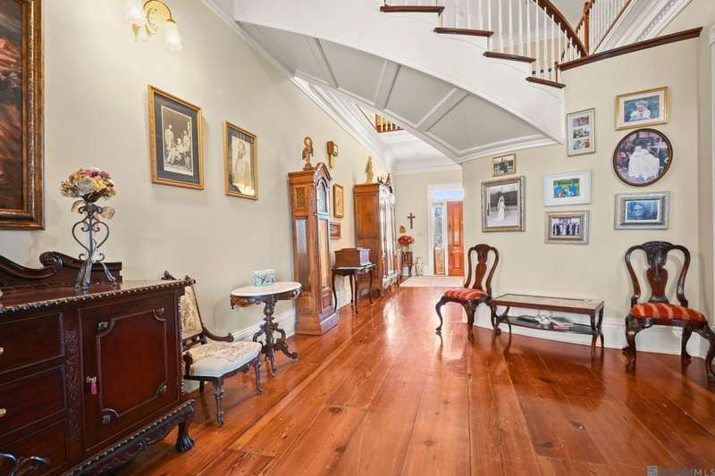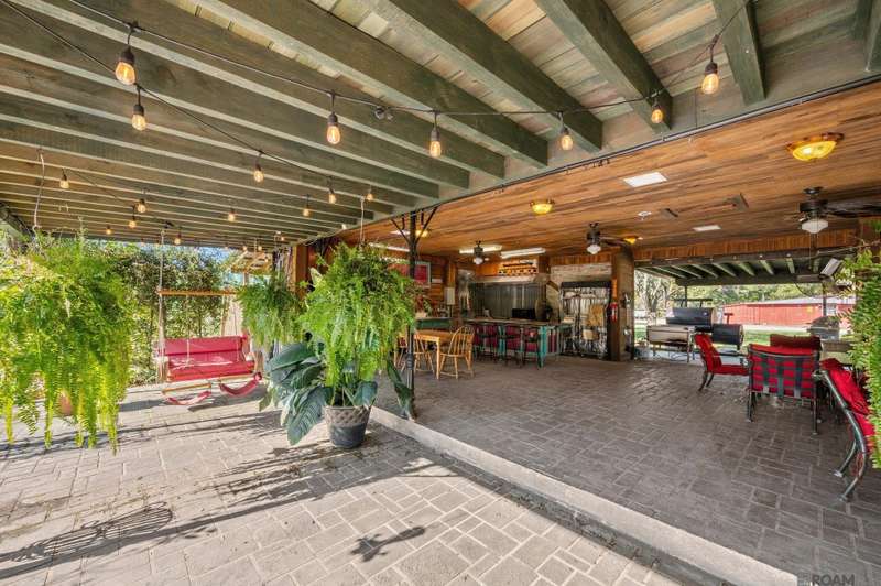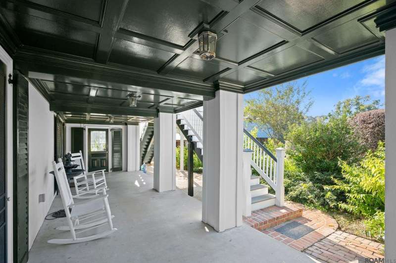 Nestled in Pine Grove's tranquil countryside, this sprawling 6,000+ sqft Acadian Style home offers grand living and natural beauty combined with the comfort of a family home. Attention to detail is evident throughout, from stacked crown molding and antique chandeliers to three fireplaces and wood and brick floors. The large kitchen overlooks the rear and side grounds, while a grand curved staircase leads to the third floor. The six bedrooms, each with ample closet space, and multiple living areas ensure comfort and privacy. The primary bedroom features an ensuite bathroom with a soaking tub, separate shower, and walk-in closet. Outside, the pool area includes an outdoor pavilion with a kitchen, dining and living space, and a fireplace, perfect for entertaining. Auxiliary buildings include a bath and outdoor shower near the pool and formal garden. The semi-detached garage has two enclosed bays and a center carport. A pond borders the left side of the home, adding to the serene setting. This luxurious property offers a peaceful country lifestyle amidst stunning natural surroundings.