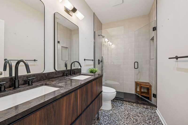 Welcome to this spacious 4 bed, 3.1 bath single-family home in Jefferson Park spanning over 3600 sq. ft. of living space and four levels. The main level has hardwood floors, featuring a separate living room and formal dining room, a double-sided gas fireplace, and a recently updated kitchen with stainless steel appliances, tons of cabinets, large island, breakfast bar, coffee bar and breakfast nook. Right off the kitchen is the upper deck, plus access to the completely built out stone patio/terrace with outdoor kitchen and fire pit. On the second level, you'll find two bedrooms, a large den/office with multiple uses, a full bath and a walk-in laundry room. Up one more flight of stairs, the entire top floor is the primary suite, inspired by the W Hotel. You'll enjoy the multiple dedicated spaces for sleeping, lounging by the gas fireplace, watching TV, plus a coffee bar with built-in mini fridge, massive custom walk-in closet and a recently refreshed en-suite bath with double vanity, soaking tub and steam shower. The lower level of the home features 10-foot ceilings throughout, comprised of a large family room professionally wired with built-in lighting, audio system, disco ball and bar. Additionally, there is a fourth bedroom and full bath with heated floors, along with tons of additional storage. There is a 2 car garage with epoxy flooring, built-in bar, wall mounted TV and more storage. Other features to note; the home has a dual-zoned HVAC system, CAT5e wiring throughout, Dolby 5.1 surround sound system, smart thermostats and sump pump. Fantastic location, close to 90/94, the Jeff Park CTA and Metra stations, schools and great street parking. Built in 2005, these homes are set back off the main street in a tranquil and quiet neighborhood. There is an HOA that covers full lawn care (mowing, edging, leaf removal), snow removal from the alley, sidewalks and steps.