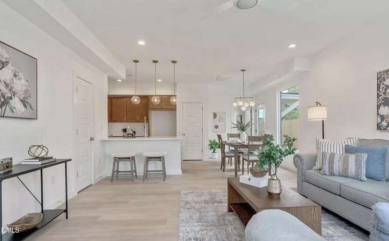 Welcome to 502A Commonwealth, a stunning single-family home built in 2023 with recent upgrades including fresh paint, artificial turf (no grass to mow!), and blinds. Step inside and be greeted by an open-concept layout highlighted by luxury vinyl plank flooring throughout, combining style with easy maintenance.The first-floor primary suite provides a private retreat with its own en-suite bath, while upstairs you'll find two additional bedrooms, a full bath, and an expansive rooftop deck - ideal for entertaining or enjoying quiet evenings outdoors. The sleek, modern kitchen features quartz countertops, delivering both elegance and durability. Close to Downtown Durham, RTP, Duke University, Duke Hospital, and Duke Regional Hospital.
