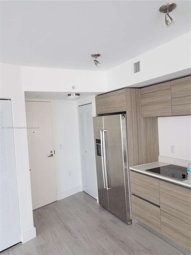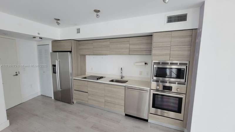 2-story unit at Peloro. Laminate floors. Main entry on upper level (2nd floor) with open-plan kitchen, living, dining and bedroom area. Stairs lead down to a small office/den on the ground level with direct street access. Please review photos and see attached floorplan. Valet parking for one car (no assigned parking or self parking). Landlord requires first, last and security. Tenant must also pay one month condo deposit to association. No short term, one year leases only. No pets.