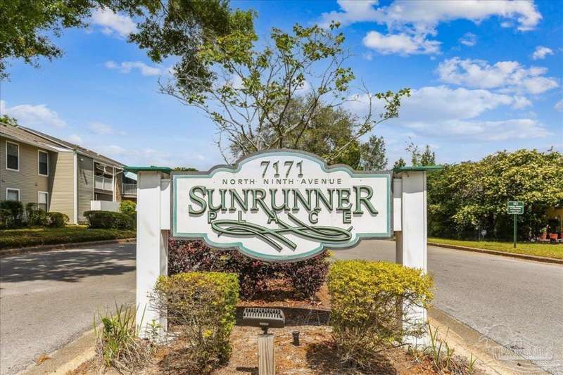 Looking for an affordable condo in the center of Pensacola conveniences? Look no further than this move in ready FIRST FLOOR unit in Sunrunner. Two spacious bedrooms with Two Full Baths PLUS A SUNROOM for crafts, home office, you name it! No carpet to contend with here as unit has been outfitted with hardwood laminate throughout. HVAC 2018, Water heater 2015 and IMPACT WINDOWS AND SLIDER in 2020! Your HOA dues cover your exterior maintenance and insurance, landscaping, trash service, and the nearby community pool. Make your appointment soon to see this great condo!