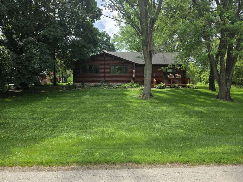 Rustic and authentic yet modern ranch home, this 3-bedroom, 2.1-bath log cabin offers the perfect blend of charm and comfort. The living and dining area features a stunning floor-to-ceiling stone fireplace, creating a warm and inviting atmosphere. The updated kitchen boasts a spacious island and custom cabinetry. Set on 4 acres with a stocked pond and mature trees, the property offers serene privacy. A partially fenced area adds functionality, while the 2-car detached garage includes an attached 2-stall barn with a tack room-perfect for equestrian enthusiasts or hobby farmers.