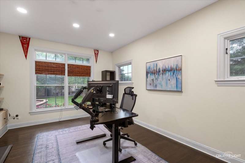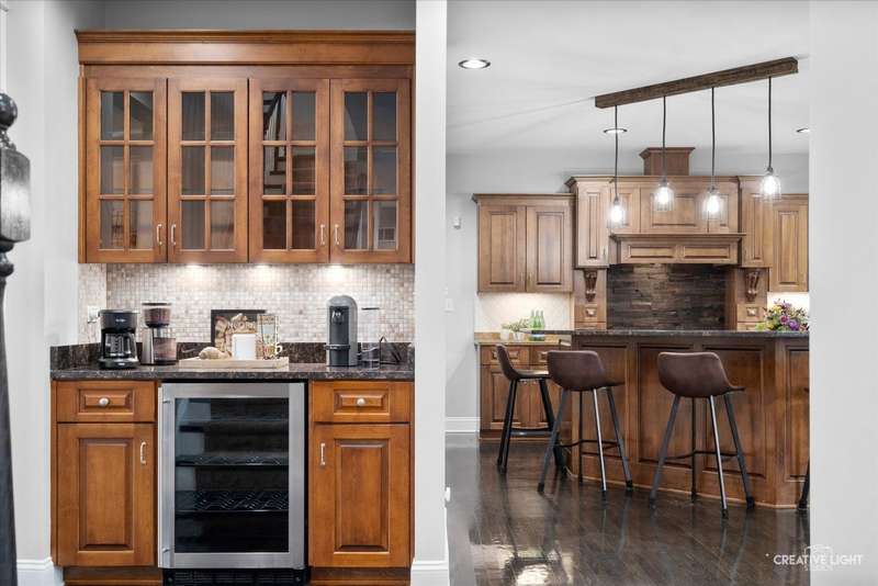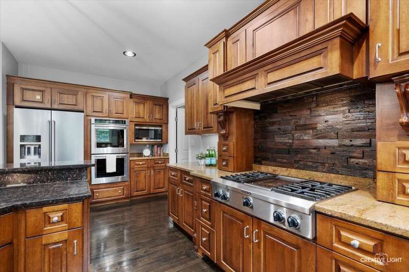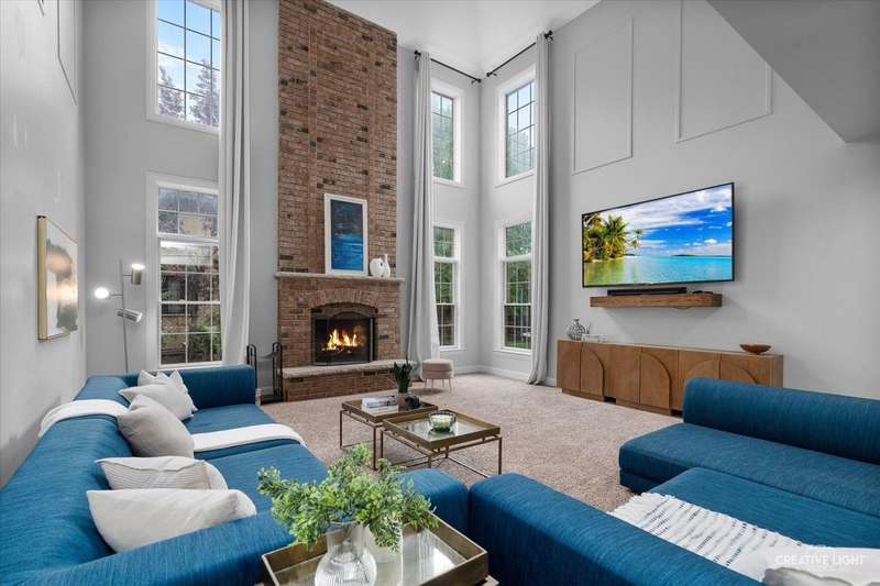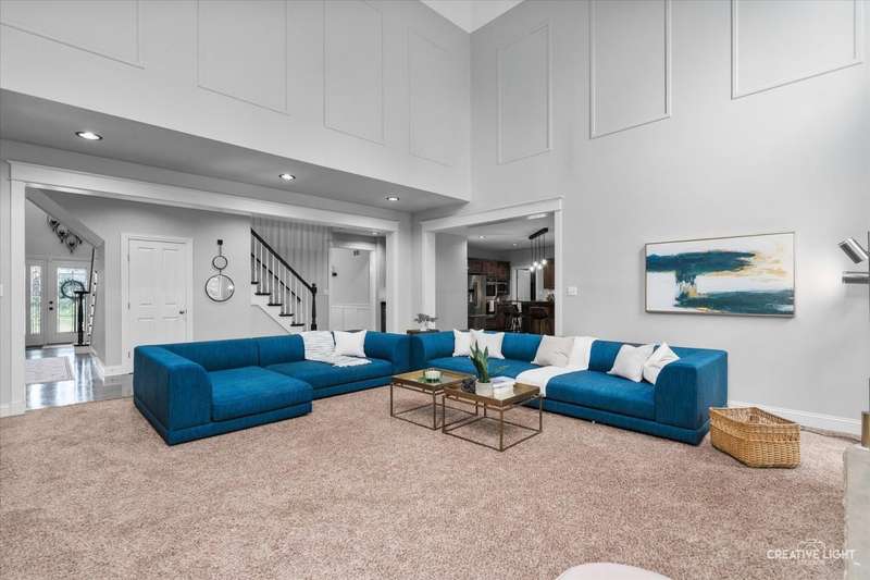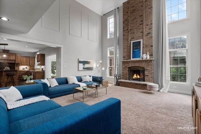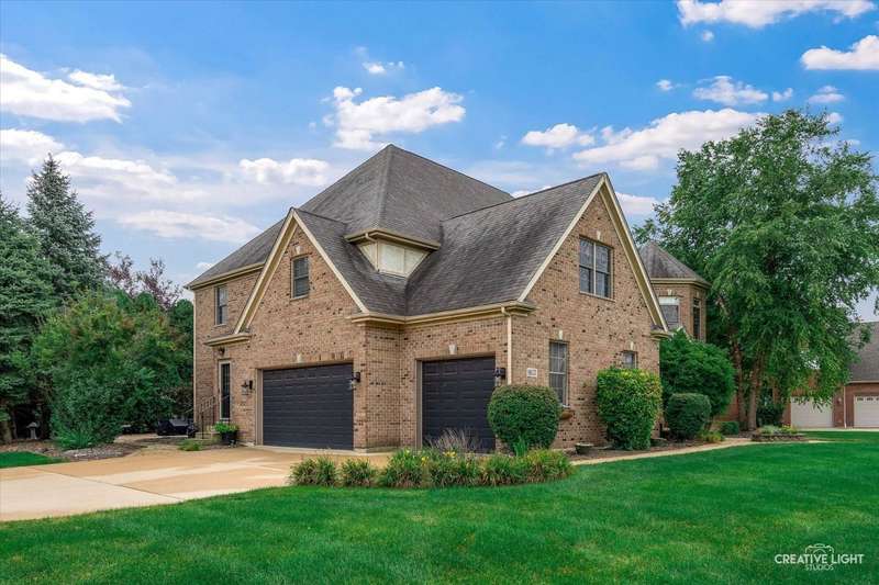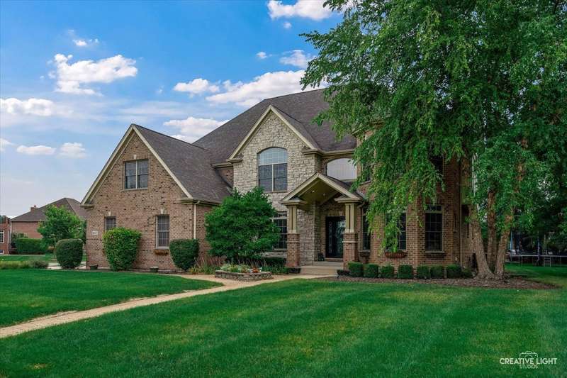 A True Standout in River Point Estates - Prestige, Privacy, and Perfectly Plainfield. Refined elegance meets thoughtful design in this luxurious custom home, perfectly positioned on a premier corner lot in a tranquil, highly desirable neighborhood. With over 4,880 square feet above grade of impeccably updated living space, including 4 bedrooms on the second level & 3 bedrooms in the basement. This residence offers an exceptional blend of sophistication, comfort, and versatility. At the heart of the home, the gourmet kitchen impresses with granite countertops, professional-grade stainless steel appliances, a walk-in pantry, and stunning birch cabinetry. A substantial center island provides both function and a focal point for gatherings. The charming sunroom invites seamless indoor-outdoor living. The dramatic two-story family room, anchored by a soaring floor-to-ceiling brick fireplace, sets the stage for memorable entertaining. Graciously proportioned spaces continue with a formal Dining Room with wainscoting. The formal living room boasts a striking turreted design, adding architectural character and charm. The private home office is tucked away in the back for peace & quiet. The second-level primary suite offers a serene retreat, featuring a sitting room, private balcony, spa-inspired bath with dual vanities, a whirlpool tub, a frameless glass shower, and generous closet space. Bedrooms 2 & 3 share a Jack-and-Jill bathroom. Bedroom 4 is located next to the 3rd full bathroom. A versatile loft that could be used for a study or play area complete this floor. The fully finished lower level extends the home's livability offering kitchenette with fridge. A large Rec Room & three additional bedrooms, one which is beingnused as an exercise room. A versatile bonus room is being used as a play room. The full bathroom has a walk-in shower. A second laundry area has cabinetry, sink & dishwasher. The basement is perfect for guests or multi-generational living. Outdoor living is equally impressive with beautifully landscaped grounds, dual paver patio areas, and a three-car garage. NEW - 2 A/C 2024! Easy access to vibrant Downtown Plainfield, Route 59 & I55. Situated near acclaimed Plainfield schools, scenic parks, walking paths, this home is a rare opportunity to experience luxury living at its finest.
