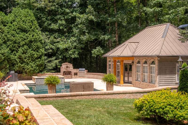 Fabulous estate property on 3.3 acres in the heart of Signal Mountain, offers both privacy and luxurious resort style living. A long driveway through lush grounds leads you to the home. The all brick home features 10 foot ceilings, hardwood flooring, fireside den and living room, dining room, kitchen, office with built-ins, powder room, spacious primary bedroom on the main level with new Calacatta tile shower, chef's kitchen with Viking, Wolf and Kitchen Aid appliances, custom cabinetry and granite countertops. A most inviting sunrom overlooks the salt water pool, spa, 3 tiered decking with Pergola, outdoor fireplace, gathering and grilling area and pool/guest house - a true oasis to come home to! Upstairs are 2 additonal bedrooms each with ensuite bath. A separate stairway leads to the light filled 4th bedroom/bonus room and bath. There is a main level 3 car garage and a lower level gym/workshop. The main house has 3,989 square feet with an additional 584 square feet in the lower level gym space. The 710 square foot poolside studio guest house offers a fireside living area, kitchen with all Kitchen Aid Appliances and Laundry and 5th bedroom and bath. The grounds are truly stunning - and so very private. a year round spring runs parallel to the back yard for added privacy. Beautiful hardwood trees and native plants provide a lush setting. There is a charming garden shed in the backyard and an additonal building with garage door that has a car lift for working on cars/storage and workshop. The entire backyard is fenced and there is a separate fenced area for dogs. Zoned for top rated Signal Mountain schools, 72 Cool Springs is more than a home, it is a lifestyle!