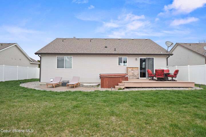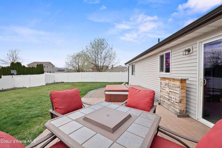 Spacious and wonderfully maintained 5 bedroom, 3 bathroom rancher with finished basement in the desirable Landings at Waterford neighborhood! Main floor laundry and primary suite allow for easy main-level living. The basement boasts a large storage room, bar area and second living room complete with a cozy gas fireplace. Private fenced backyard with hot tub and convenient alley access provides a perfect retreat for outdoor entertaining. The oversized 2-car garage offers plenty of storage space for vehicles and outdoor equipment. Located close to area schools, shopping, and other community amenities, this home is ideal for those looking for convenience and comfort. Come live the Coeur d'Alene lifestyle and explore the vibrant culture and outdoor recreation opportunities from boating to hiking, biking, and more. Welcome Home!