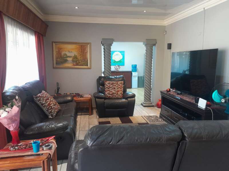 This beautiful and well-maintained property in Ooseinde offers incredible value and endless possibilities! Ideal for a large family or anyone looking to generate rental income, this gem features a spacious 4-bedroom main house plus two additional flats. The main house boasts a modern kitchen with separate laundry and scullery areas. You'll love the open, flowing layout that includes a spacious lounge, dining room, TV room, and a study – perfect for working from home. All four bedrooms are generously sized, fitted with built-in cupboards and air-conditioning. The main bedroom includes an en-suite bathroom, and there’s a second full bathroom for the rest of the home. Tiled floors run throughout for easy maintenance and a sleek look. Step outside and be impressed by the entertainment-ready yard. Enjoy the large lapa, sparkling swimming pool, jacuzzi, and a serene fish pond. The garden is neat, well-kept, and fully equipped with a borehole and JoJo tank – ensuring your greenery stays lush all year round. In addition to the main house, the property includes two flats: • A 1-bedroom flat with its own kitchen and bathroom, ideal for rental or guests. • A 2-bedroom flat currently converted into a daycare centre – a perfect opportunity for additional income or a home business. There’s also a workshop area, adding even more functional space to this versatile property. This home is packed with extras and potential – too much to list! Don’t miss out on this rare opportunity. Call us today to arrange a viewing and make this incredible property yours!