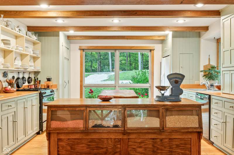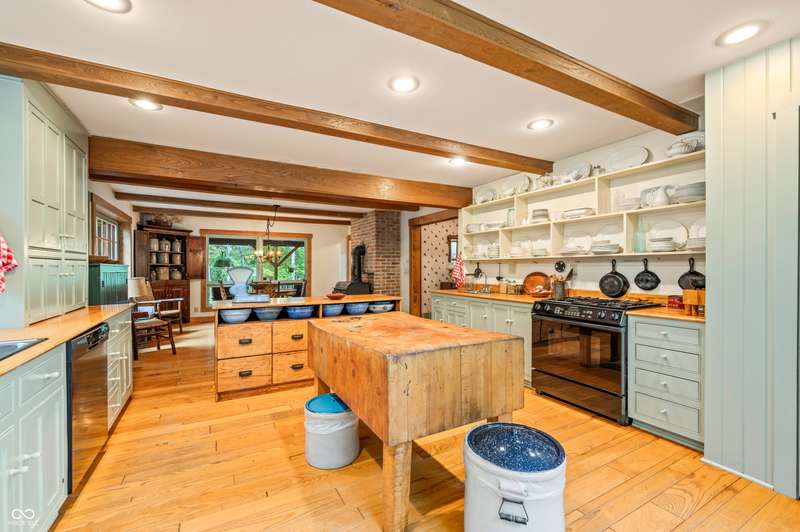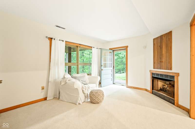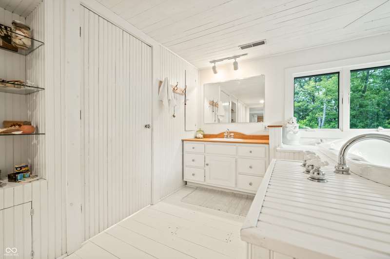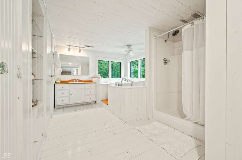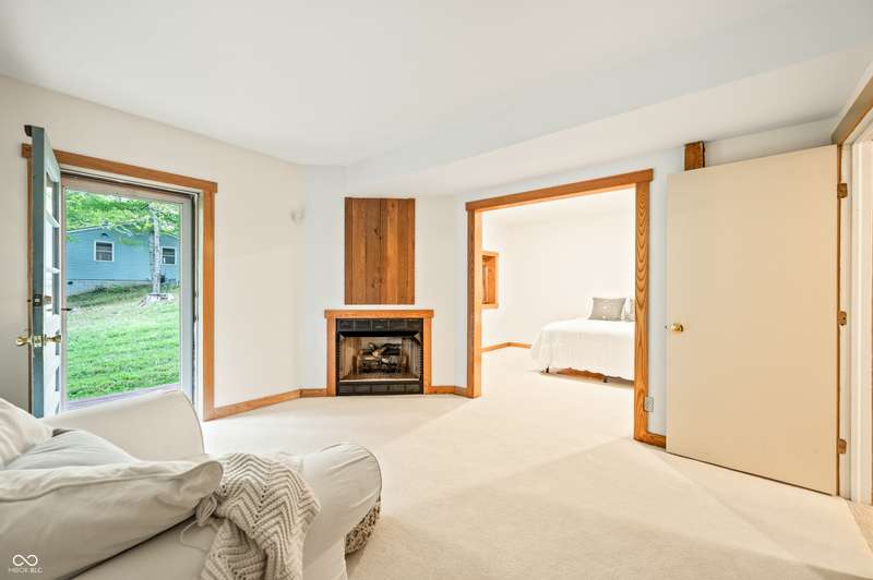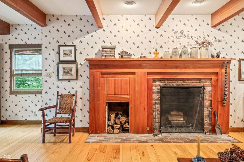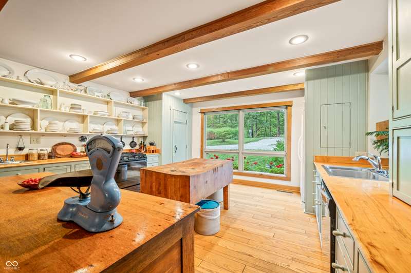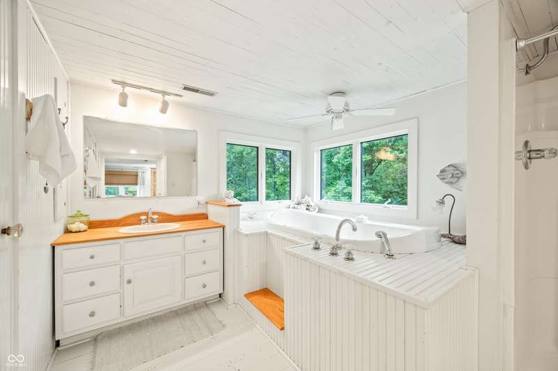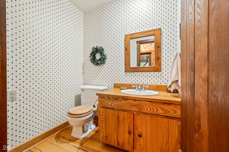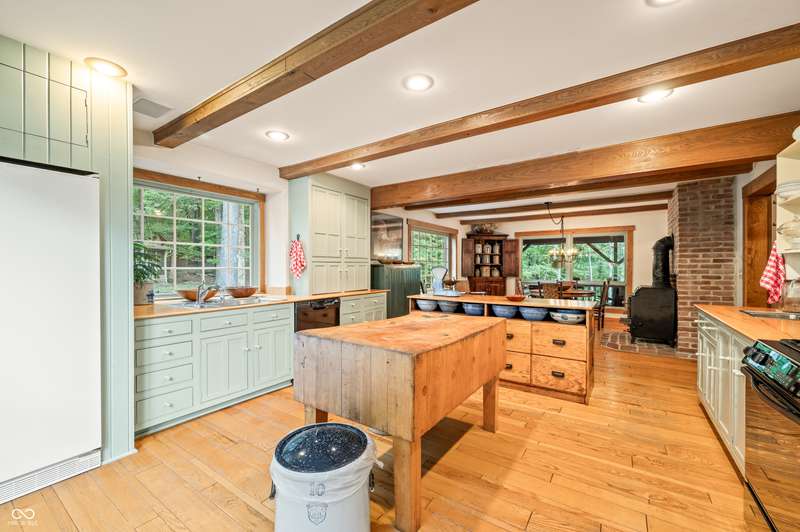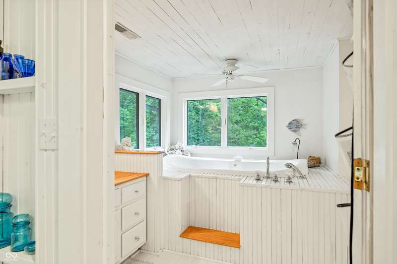 Nestled in the serene Annandale Estates of Brown County, just minutes from downtown Nashville, this rustic, bi-level home exudes warmth and character. Brown County craftsmanship is evident throughout, from the sassafras doors, cherry and sassafras beams to the custom maple countertops & cabinets in the kitchen, adding a touch of natural elegance. The living room welcomes you with the hardwood Ash floors & a Rumford fireplace, complete with a gas starter, custom-built mantel & integrated wood storage. Designed for comfort & style, the space includes a cozy seating area, perfect for enjoying quiet moments in a setting that puts you close to nature. The spacious kitchen & dining room blend seamlessly, creating an inviting heart of the home where the hardwood floors continue to flow. The dining area is anchored by a wood stove set against a beautiful brick hearth, offering warmth and ambiance. The kitchen is open with large windows that bathe the space in natural light. Custom cabinets & maple countertops add a touch of elegance & practicality. With 3 bedrooms and 3.5 baths, this home offers flexible living arrangements to suit a variety of needs. The main bedroom suite is a bright & airy retreat designed for relaxation. This spacious sanctuary offers a tranquil atmosphere, perfect for unwinding. The ensuite bath features a 2-person, jetted soaker tub, a separate shower, & a private water closet, providing a spa-like experience. On the lower level, a well-appointed guest suite offers privacy & comfort, complete with its own living area, full bath, & a private entrance. Each bedroom is designed with comfort & versatility in mind, providing ample space & unique character, while the bathrooms offer both style & function. Enjoy outdoor living space on the main deck that provides both sun & shade and is plumbed and ready for an outdoor clawfoot tub. The lower level features an outdoor shower, ideal for rinsing off after exploring the beautiful surroundings.