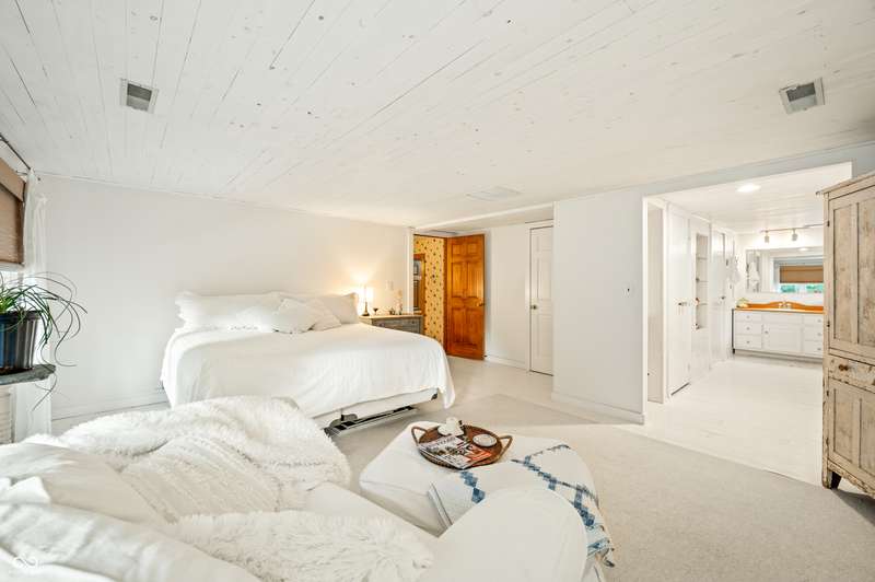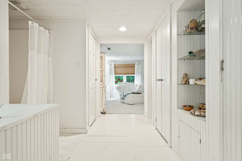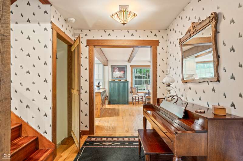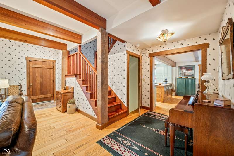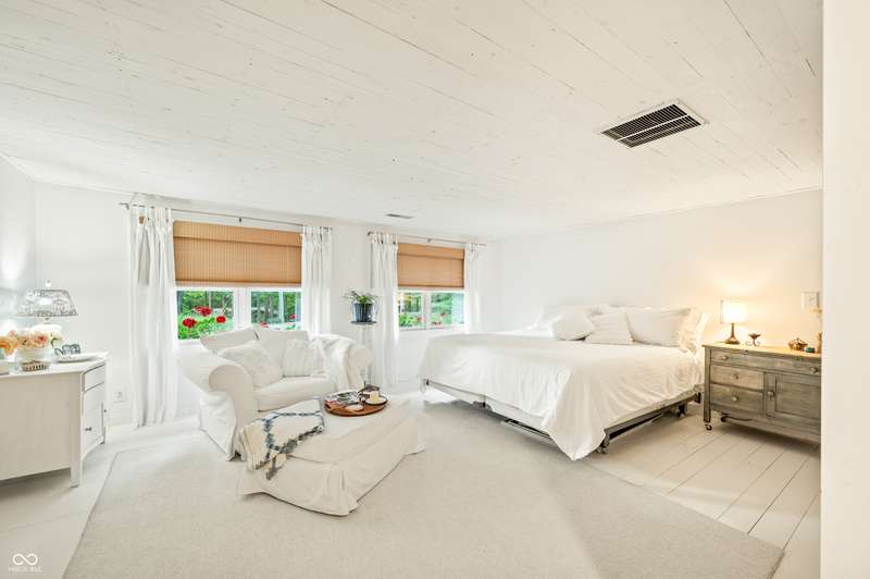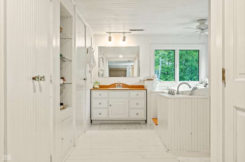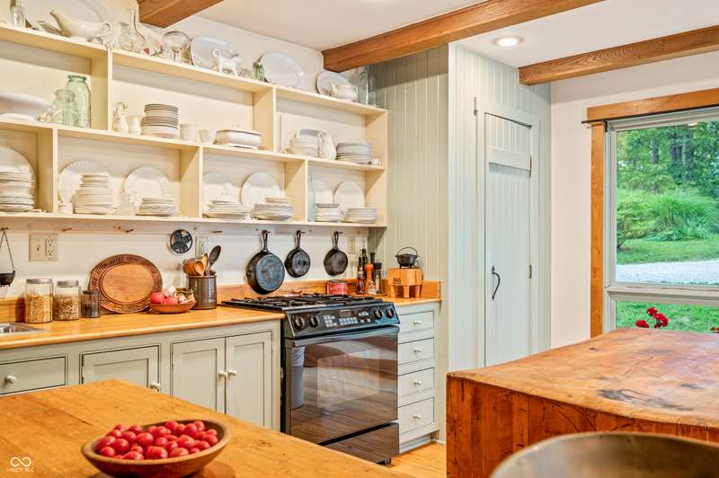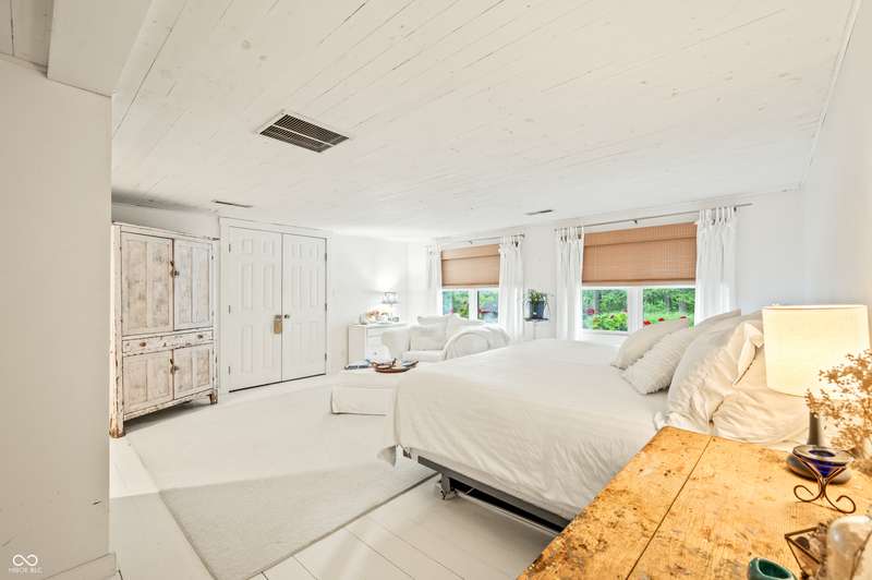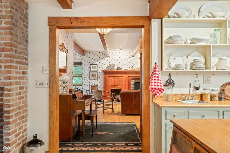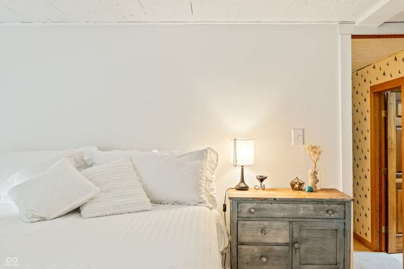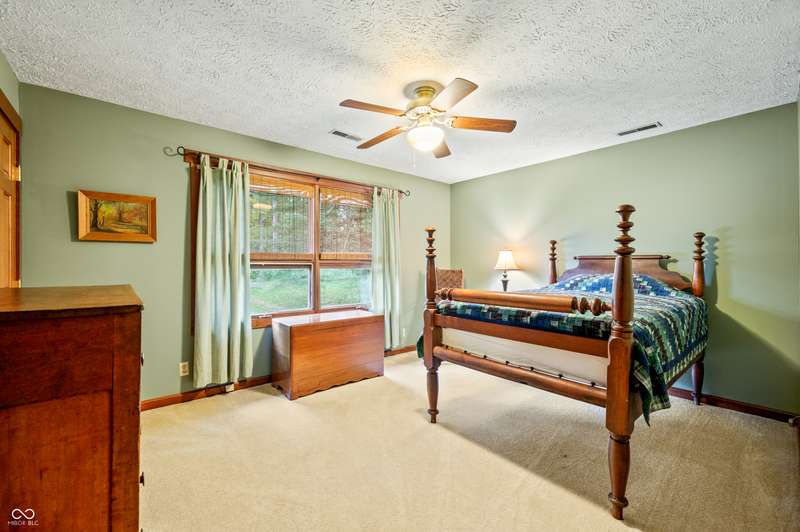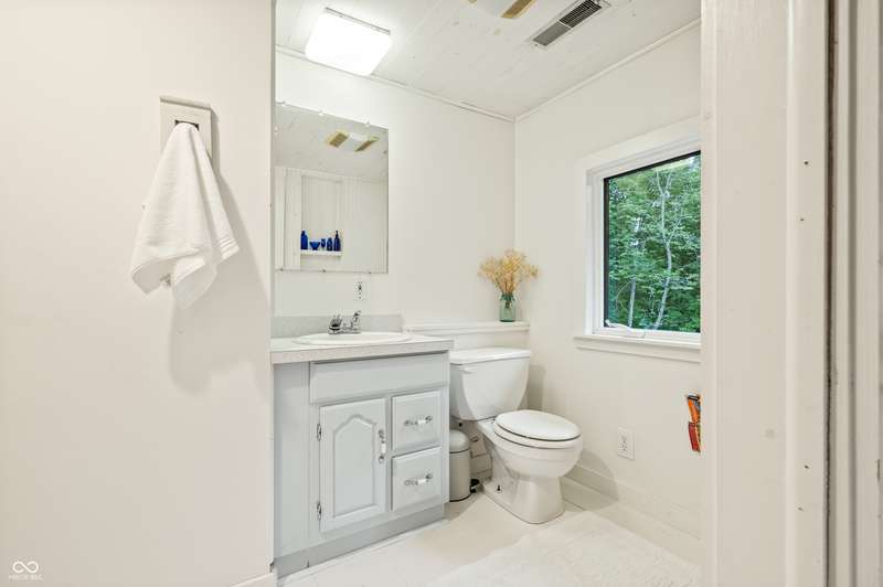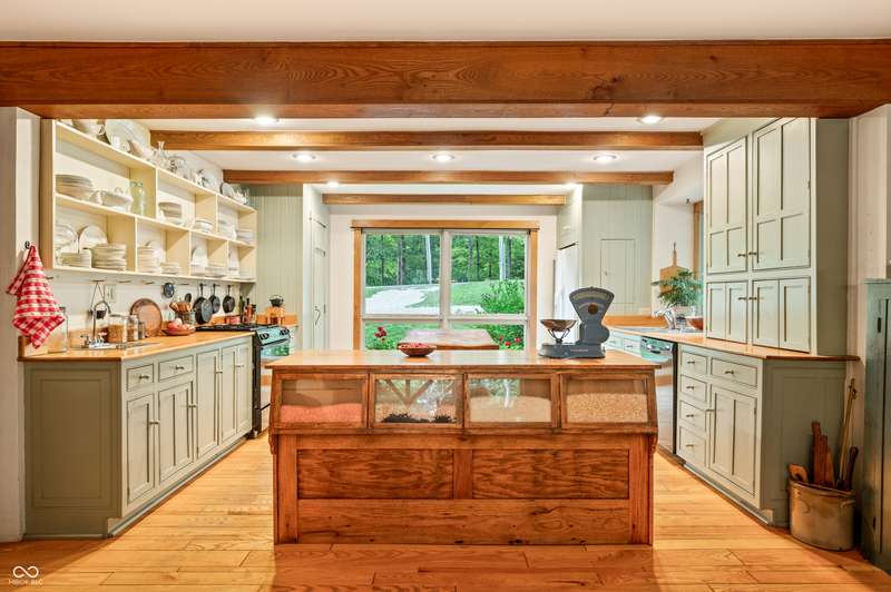 Nestled in the serene Annandale Estates of Brown County, just minutes from downtown Nashville, this rustic, bi-level home exudes warmth and character. Brown County craftsmanship is evident throughout, from the sassafras doors, cherry and sassafras beams to the custom maple countertops & cabinets in the kitchen, adding a touch of natural elegance. The living room welcomes you with the hardwood Ash floors & a Rumford fireplace, complete with a gas starter, custom-built mantel & integrated wood storage. Designed for comfort & style, the space includes a cozy seating area, perfect for enjoying quiet moments in a setting that puts you close to nature. The spacious kitchen & dining room blend seamlessly, creating an inviting heart of the home where the hardwood floors continue to flow. The dining area is anchored by a wood stove set against a beautiful brick hearth, offering warmth and ambiance. The kitchen is open with large windows that bathe the space in natural light. Custom cabinets & maple countertops add a touch of elegance & practicality. With 3 bedrooms and 3.5 baths, this home offers flexible living arrangements to suit a variety of needs. The main bedroom suite is a bright & airy retreat designed for relaxation. This spacious sanctuary offers a tranquil atmosphere, perfect for unwinding. The ensuite bath features a 2-person, jetted soaker tub, a separate shower, & a private water closet, providing a spa-like experience. On the lower level, a well-appointed guest suite offers privacy & comfort, complete with its own living area, full bath, & a private entrance. Each bedroom is designed with comfort & versatility in mind, providing ample space & unique character, while the bathrooms offer both style & function. Enjoy outdoor living space on the main deck that provides both sun & shade and is plumbed and ready for an outdoor clawfoot tub. The lower level features an outdoor shower, ideal for rinsing off after exploring the beautiful surroundings.
