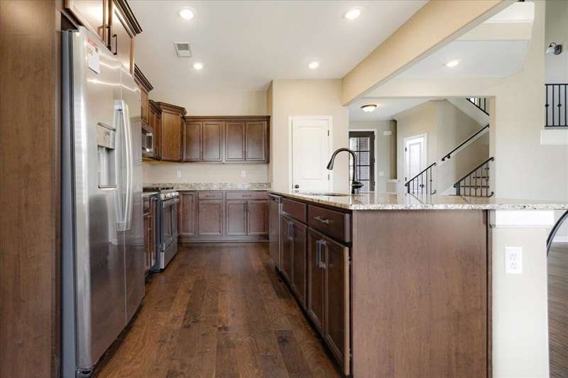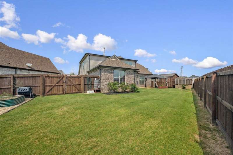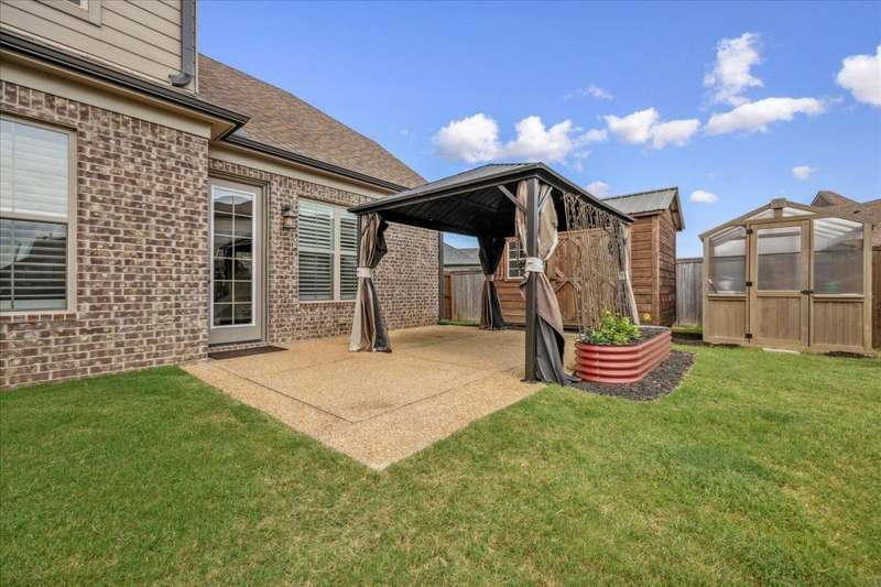 NEW PRICE...Regency-built Belmont floor plan with 4 bedrooms (1 could be bonus) and 2.5 baths. Primary down and 3 up. Beautiful hardwood floors down, open concept greatroom and kitchen. All appliances stay including washer and dryer. Enjoy a nice patio with covered structure, storage building, and greenhouse. Wonderful backyard features above-ground planters?perfect for gardening! Seller offering 1 year First American home warranty.