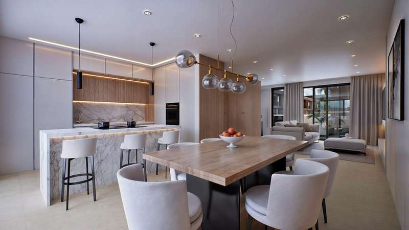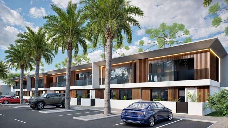Modern three-bedroom townhouse in a new private condominium called Zion Oasis, with private pool and garden, about 10 minutes from Burgau Beach, for sale in Almádena, Luz, Algarve. This 3-bedroom villa, in a privileged location just a few minutes from the beach, has been thought out in detail to offer convenience, luxury, comfort and privacy to its residents. With two floors and spacious areas, the villa comprises a small garden. Upon entering the house, we have access to the fantastic open-plan living room with dining room and fully-equipped kitchen with modern built-in appliances. There is also access to the terrace with barbecue and private pool, a service bathroom, and the stairs to the upper floor, where the bedrooms are, one of which has an en-suite bathroom, walking closet and a private balcony, the other two bedrooms have built-in closets, a large window and access to a fantastic shared balcony. These two bedrooms share a large bathroom. This villa is an excellent option for a permanent residence or second home. With stunning beaches nearby, renowned golf courses, quality restaurants, easy access to the EN125 national road and the A22 highway, and Faro International Airport is about an hour away. CHARACTERISTICS: Plot Area: 124 m2 | 1 329 sq ft Area: 124 m2 | 1 335 sq ft Deployment Area: 62 m2 | 667 sq ft Bedrooms: 3 Bathrooms: 3 Energy efficiency: A+ FEATURES: 3 bedrooms Equipped kitchen Balconies Terrace Garden Swimming pool