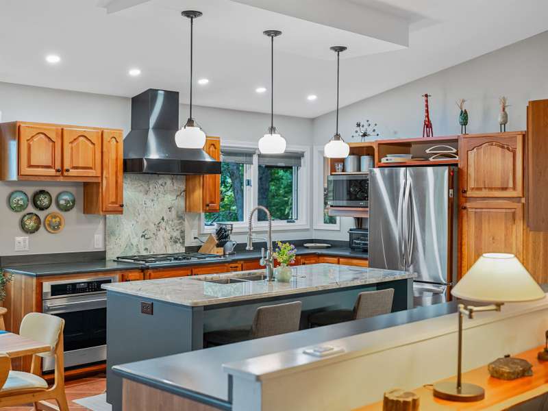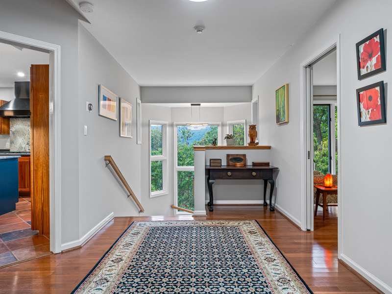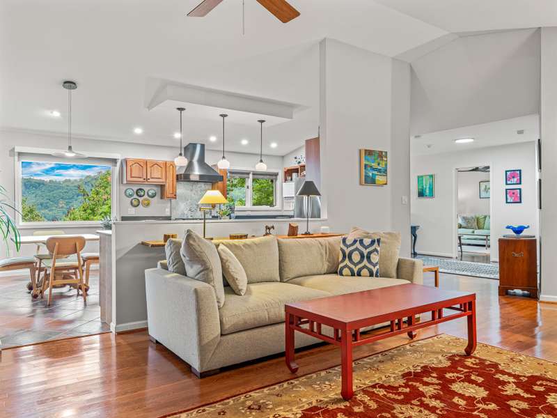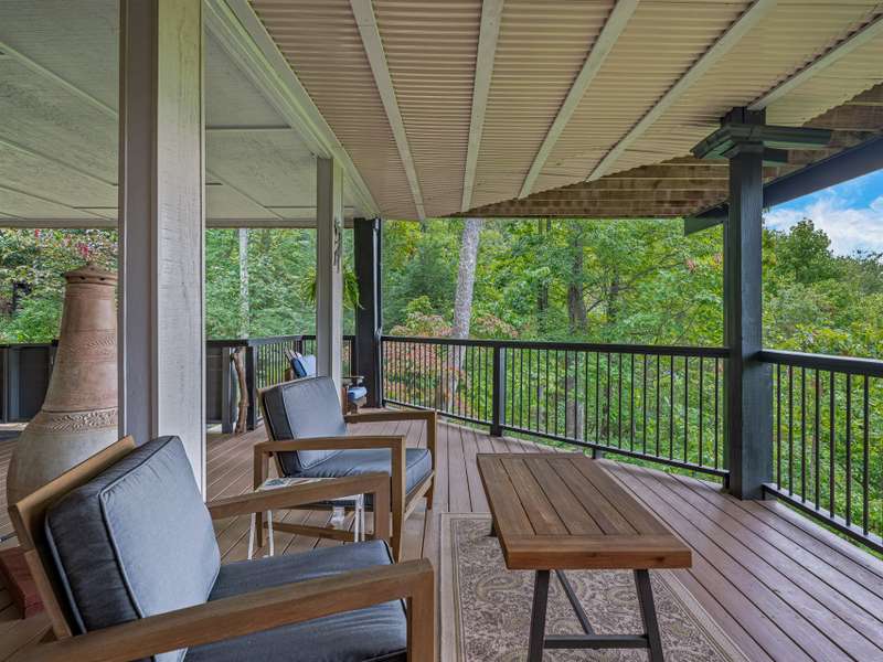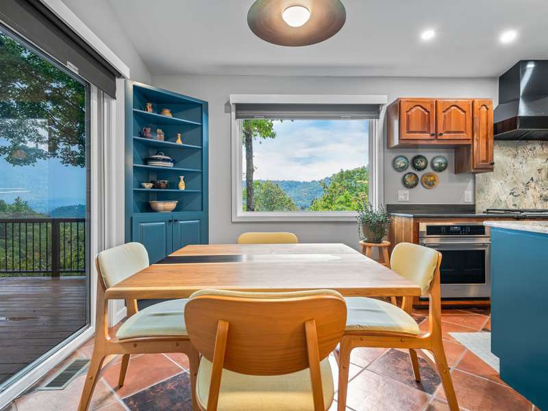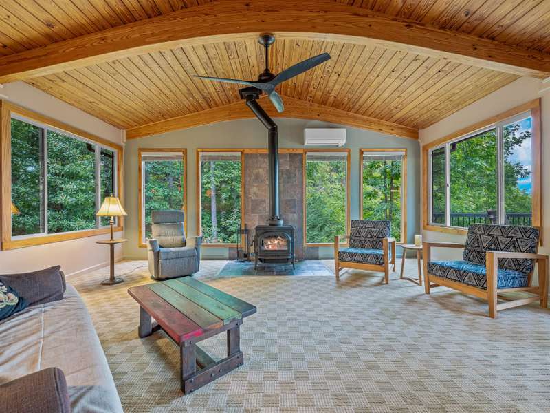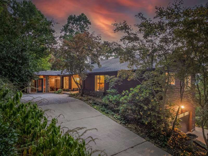 Contemporary design meets mountain luxury at this stunning mountain retreat in the coveted Sondley Estates. Perched on a private, elevated lot just minutes from downtown Asheville, you'll quickly be swept away by the long-range, west-facing views of the Blue Ridge Mountains. The perfect blend of modern comfort and natural serenity. Step inside to discover an open-concept main level featuring vaulted ceilings, expansive windows, and stunning oak wood floors. A custom stone fireplace anchors the living room, while clean architectural lines and natural materials throughout reflect a refined, mid-century-inspired aesthetic that echo its breathtaking surroundings. The chef's kitchen is a standout?equipped with high-end appliances, cherry wood cabinetry, granite countertops, and elegant stone-tiled floors. Flow into the spacious sunroom, where a J?tul wood stove, wood-paneled ceilings, and wraparound views create the ultimate space to relax as the sun sets behind the mountains. The lower level offers flexible living space with abundant natural light and a ?treehouse? feel?perfect for hosting guests, creating a studio, or relaxing in total privacy. Sliding glass doors lead to an expansive covered deck that extends the living space outdoors where you'll be greeted with intimate mountain vistas across the French Broad River valley. Recent updates include a new HVAC system, new garage door, and new mini-split units for added comfort throughout. The oversized two-car garage provides tall ceilings and ample storage. Nature lovers will appreciate the convenient access to recreation as this property backs-up directly to the Blue Ridge Parkway?offering easy connection to the Mountains-to-Sea Trail via nearby access points on Upper Sondley Drive. Steps from the garden area of this home lead directly to the Blue Ridge Parkway providing a timely commute to incredible hiking or biking options. Whether you're seeking a refined second home or a peaceful escape in one of Asheville's most sought-after communities, this is luxurious mountain living at its finest.