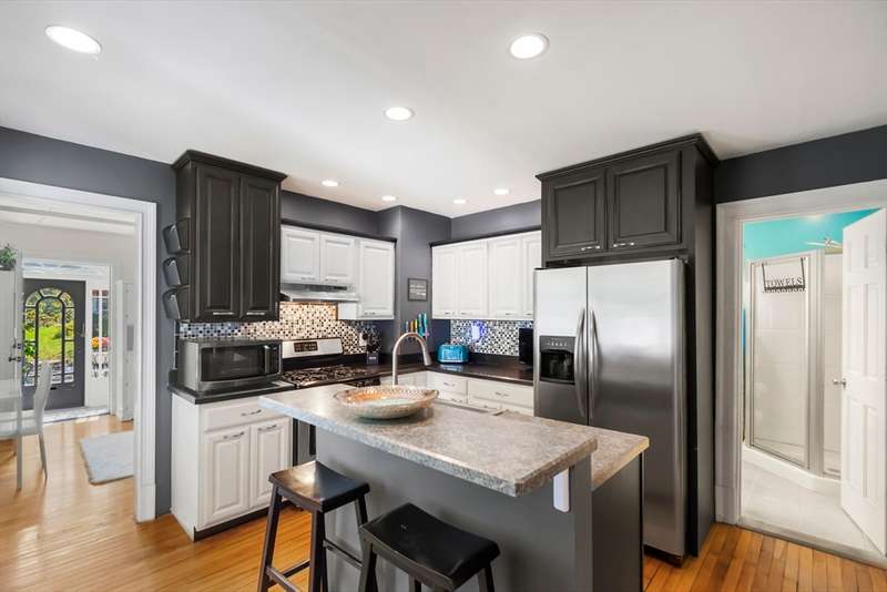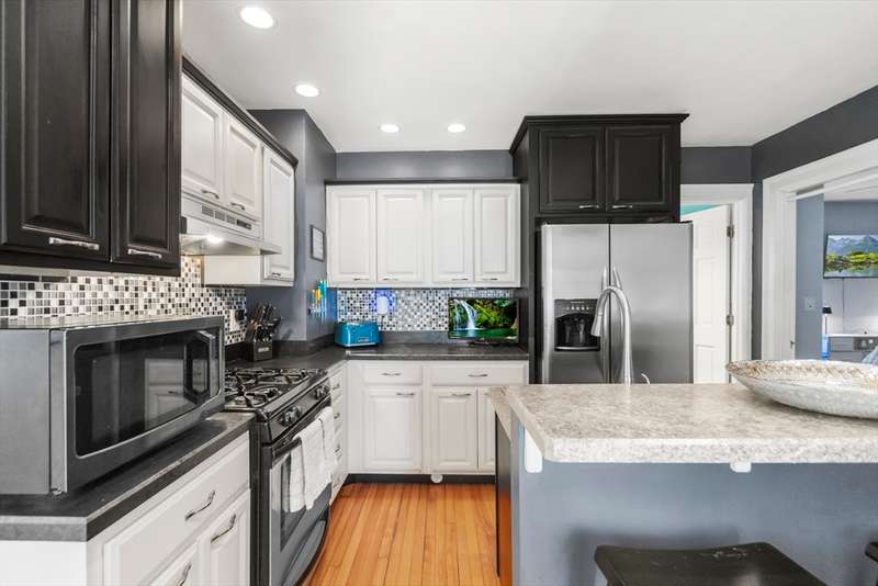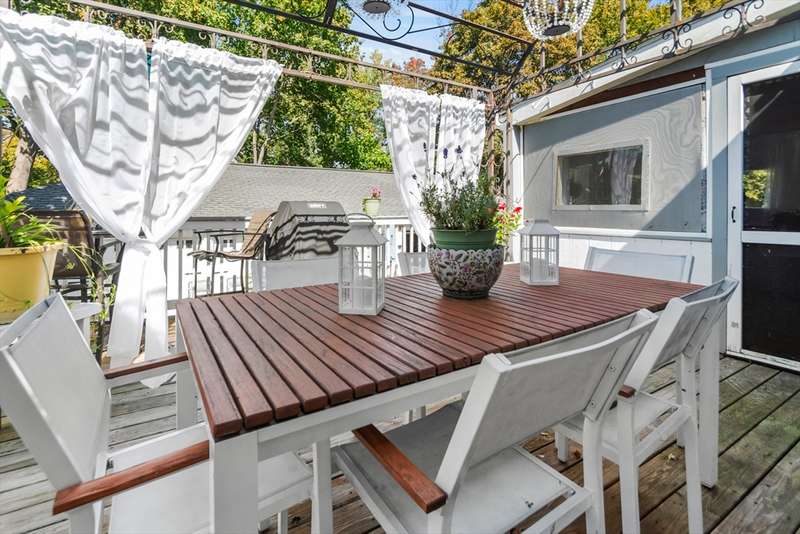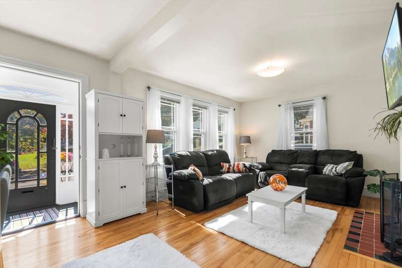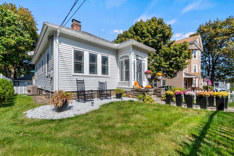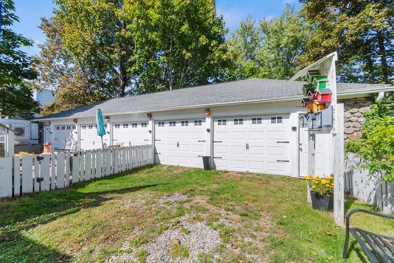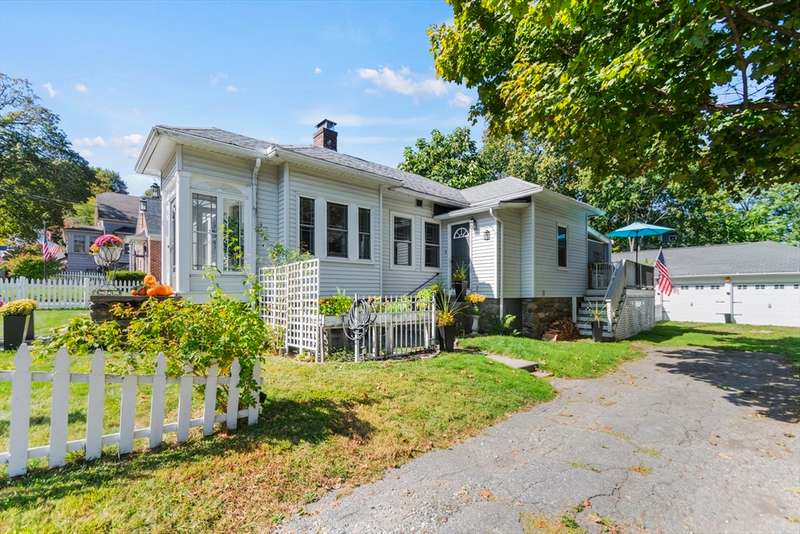 Open house cancelled, Offer Accepted! Here is the charming white picket fence home with the beautiful curb appeal you’ve been searching for! A sun-filled entry welcomes you into the inviting living room featuring hardwood floors and a cozy fireplace. The spacious kitchen boasts a center island with breakfast bar and stainless steel appliances, perfect for cooking and gathering. Two first-floor bedrooms and a 3/4 bath with convenient laundry hookups offer easy single-level living, while French doors lead to a delightful two-season porch. Outside, enjoy a wraparound back deck overlooking the fenced-in backyard with a newer retaining wall. The impressive FIVE-bay garage includes a partially finished, heated section ideal for a game room, hobby space, or workshop. Central air adds year-round comfort to this picture-perfect home. Your new home is tucked away, yet just minutes from shopping, restaurants and more!