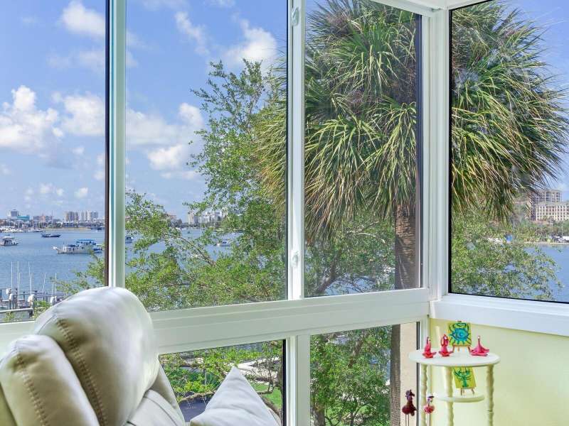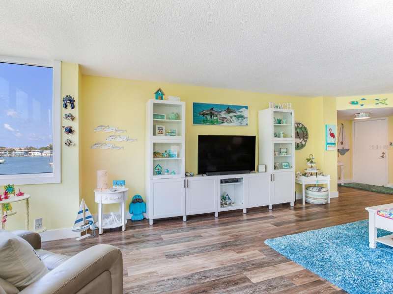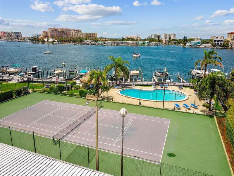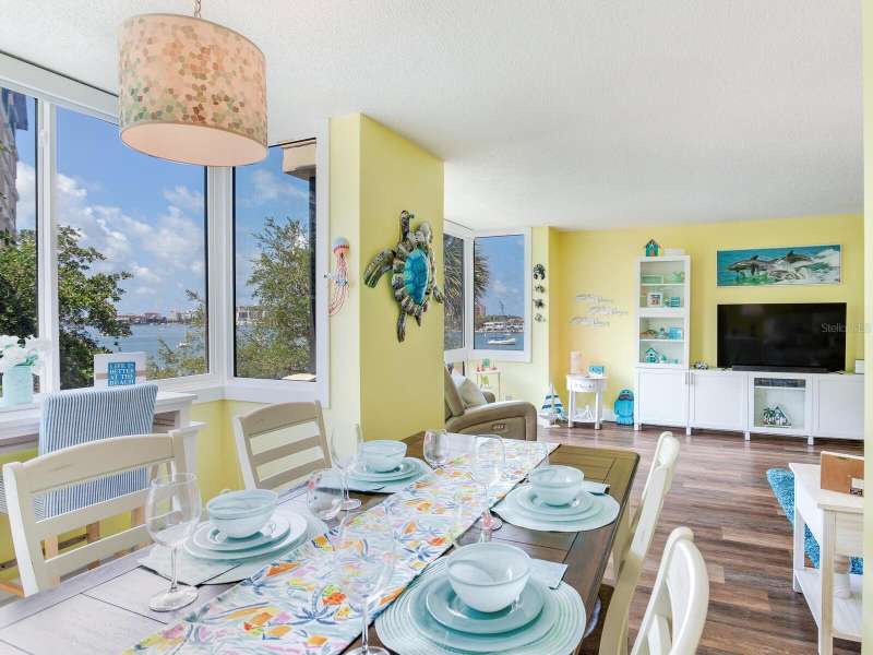 Under contract-accepting backup offers. ** MILESTONE INSPECTION STUDY HAS BEEN COMPLETED & BUILDING PASSED INSPECTION! ** Enjoy this gorgeous, turnkey, bright, and light, completely renovated 2-bedroom, 2-bath condo with an open floor plan. Located on the 3rd floor of Diamond Isle Condo on Island Estates in Clearwater Beach, it boasts stunning water views overlooking sparkling Clearwater Harbor, the Intracoastal Waterway, and seasonal sunsets over Clearwater Beach. This spacious condo features a large living room, dining room, and a separate breakfast nook that can be used as a study or office. The kitchen has been thoughtfully remodeled with quartz countertops and newer stainless-steel appliances, including a new washer and dryer. Additional updates include all new windows (2022), new luxury vinyl floors (2022), electric shades with blackout curtains in the living and dining rooms with remote control (2022), a new air conditioner (2023), a new water heater (2022), new closet doors (2022), new lighting (2022), all new outlets, new paint throughout the condo (2021), and a separate ice maker in a large closet pantry. There is ample storage space in the kitchen pantry and built-in closet organizers throughout. Enjoy all the building amenities, such as a gym, locker rooms with a sauna, a billiard room, a spacious clubroom, and more. Outside amenities include a tennis court, a waterfront heated swimming pool, a Tiki Hut with a BBQ grill, and a community dock great for fishing. For boaters, boat slips are available on a first-come, first-served basis, rented out by the association at a low cost of $190 per/month. If you desire to install a boat lift, it would be at the buyer's expense. Other features include an assigned parking space (#2), a pet-friendly community (with a 20 lbs. max weight), and the condo can be leased after 1 year of ownership. Furnishings are included in the sale. The Diamond Isle Condo Community is located in the beautiful Island Estates community, close to shopping, restaurants, a grocery store, banks, salons, and just a short drive, bike, or Jolly Trolley ride to beautiful new Coachman Park & to the world-renowned sugar sand beaches of Clearwater Beach.
