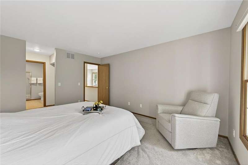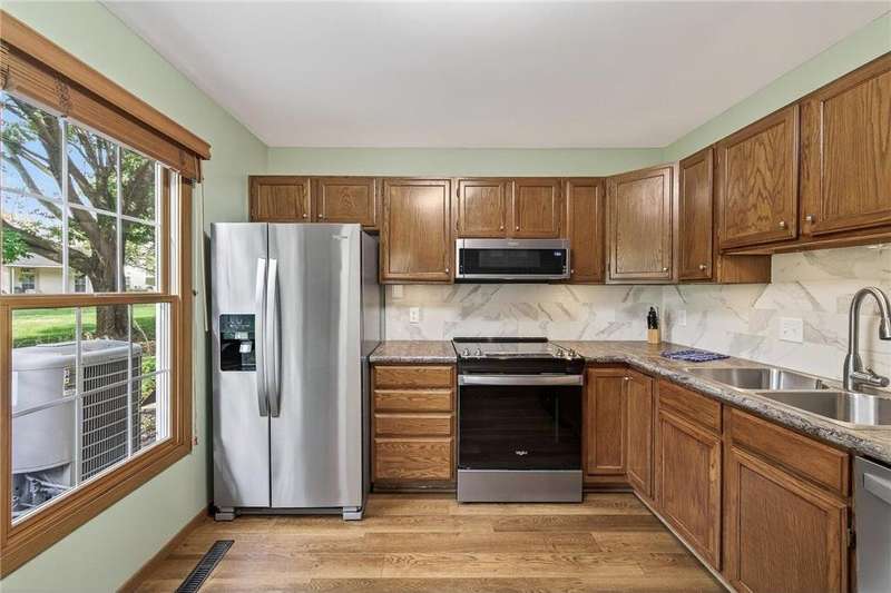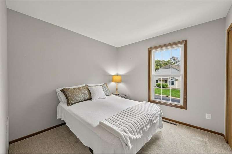 Welcome home to a beautiful 3-bed, 3-bath townhome in desirable West Bloomington! The bright and inviting main level features vaulted ceilings, an open-concept layout, and an informal dining area—perfect for everyday living and entertaining. Upstairs, you’ll find all three bedrooms, including a spacious owner’s suite with a walk-through closet and a private full bath with double vanity. With three bedrooms and two full baths on the upper level, this home offers both comfort and convenience. Move-in ready and ideally located near parks, lakes, and scenic biking and hiking trails, this is the perfect blend of style, function, and location! The roof was replaced in 2019 (all HOA roof replacement) 2020 – Popcorn ceilings removed and repainted 2020 – All walls repainted 2021 – Updated plank flooring on main level and added new carpet to stairs and upper level 2022 – Updated kitchen with new appliances, refinished cabinets, new countertops, added cabinets and coffee bar 2022 – Modernized light fixtures 2024 – Added entryway drop zone 2025 – Exterior trim and front door painted Washer and dryer were replaced in 2018, laundry room floor and cabinet added in 2021 with other flooring updates Laundry room cabinet and drop zone shelving/cubes/bench convey with the property.