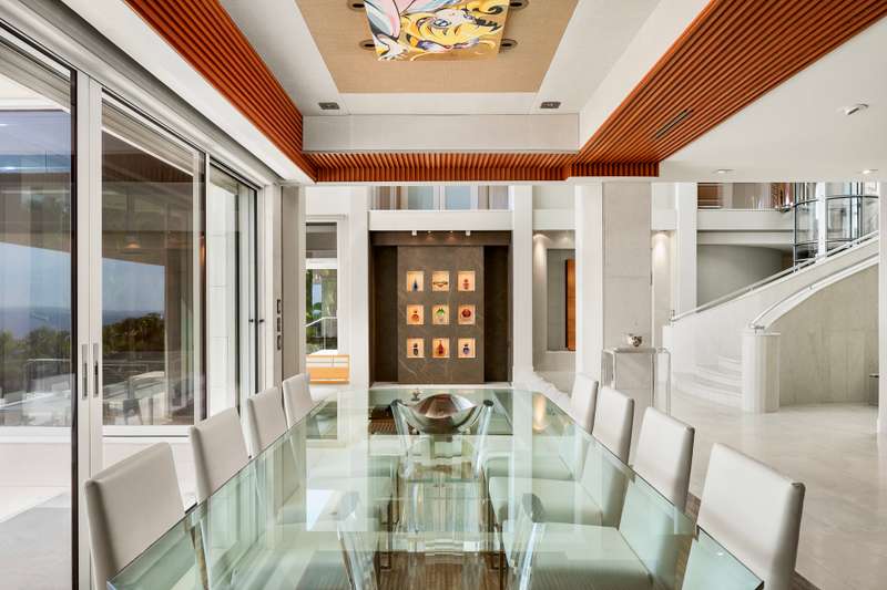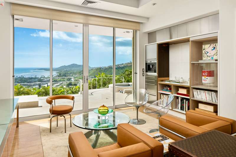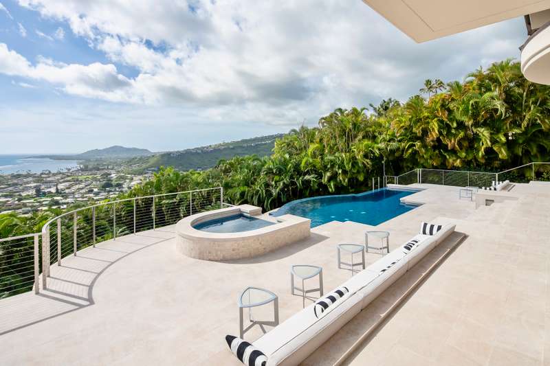 Newly priced at a fraction of the cost to rebuild! Situated on one of the most desired lots in Hawaii Loa Ridge, Kaimana Hila o?ers complete privacy and unobstructed views of Diamond Head, the Pacific Ocean, and Honolulu’s coast from nearly every room. Designed by award-winning architect Je? Long, this residence combines resilient steel-and-concrete construction with interiors crafted by artisans known for their work on ultra-luxury yachts and couture boutiques. Exquisite details like Spinneybeck Italian leather walls, custom closets by Molteni & C Dada, and vein-matched travertine marble bathrooms showcase luxury at every turn. At its heart, a Pininfarina-designed kitchen with Snaidero cabinetry and Gaggenau appliances elevates daily living and entertaining alike. Outside, an expansive lanai with a saltwater infinity pool and hot tub, framed by lush landscaping and breathtaking views, creates a resort-style sanctuary. German-engineered hurricane shutters, a professional security system, and a gated community with 24hr security make this a true lock-and-go residence—o?ering unmatched luxury and refinement in Honolulu.
