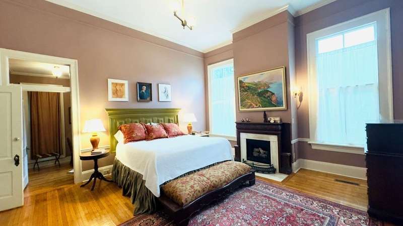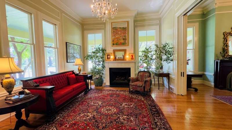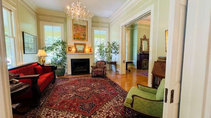 "It's like living in a piece of vintage jewelry." Musical artist Bibi Farber describing the Rothschild-Pound House, Summer 2024. While many houses are renovated according to the latest trends, this house is fearlessly authentic. It's situated on a beautiful corner lot in the Original City Historic District. The wrap-around veranda is shaded by lacy white crepe myrtles. Fourteen foot ceilings, original baths, moldings, mantles, Zellige tile, and a magnificent hand carved staircase will dazzle those weary of the predictable home. Incredible natural light shifts through floor-to-ceiling windows throughout the day. Its proximity to the river and Riverwalk affords a lifestyle of elegance and history within the vibrant community of Uptown Columbus. The last remaining Second Empire Victorian in this region, it's truly one-of-a-kind.