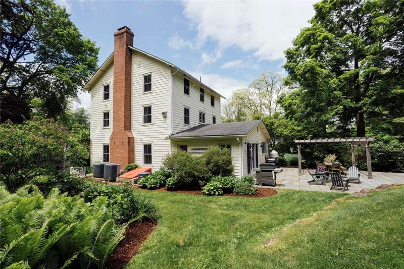 This c. 1880 three-story farmhouse seamlessly blends historic charm with modern luxury, meticulously cared for and thoughtfully curated to offer both timeless elegance and contemporary comfort.Step inside and be greeted by the inviting, light-filled living room. This spacious area exudes classic sophistication, centered around a warming wood-burning fireplace and boasting large windows that open to the serene backyard. Adjacent, the open-concept kitchen and dining area a collaboration between the homeowners and renowned designer Jean Stoffer forms the heart of this historic home. Gorgeously renovated in 2022, it's flooded with natural light from generous windows and French doors, showcasing luxury fixtures, handmade tile, premium hardware, and built-in Sonos speakers throughout. An inviting library/office and a convenient powder room thoughtfully complete the main level.Upstairs, two bedrooms, each with an en-suite bathroom, grace the second floor. The primary suite is a luxurious retreat featuring an expansive bedroom complete with a gas fireplace, an additional sitting area, and smart lighting. Its attached bathroom boasts a handcrafted glass shower enclosure, radiant heat, and stunning nature views while maintaining privacy. The light-filled third floor presents two additional bedrooms, each with its own en-suite bathroom, plus an adaptable open living space perfect for a playroom, home gym, or additional living area.In 2021, all new windows, hardware, and solid wood doors were installed, complemented by refinished or new hardwood floors throughout for a seamless flow between levels. All major home mechanics have been upgraded for maximum energy efficiency, and for ultimate security and comfort, a whole house generator is included. Beyond the home, a magnificent 900 sq ft bluestone patio with a pergola, gas fire pit, and a barrel sauna provide exceptional outdoor living. This exquisite property is enveloped by conservation land that provides unobstructed views across a vast natural landscape and safeguards against future development. The hamlet of Shekomeko is a beautiful slice of the Hudson Valley, where the contours of the land and layers of history create a setting rich in natural and cultural heritage. While offering the tranquility of a secluded retreat, Shekomeko remains conveniently accessible to vibrant towns like Hudson, Rhinebeck, and Great Barrington, with easy rail access to New York City. This makes it an ideal haven for discerning buyers seeking the ultimate upstate escape.OPEN HOUSE SUNDAY JUNE 29th 1-4:00 pm
