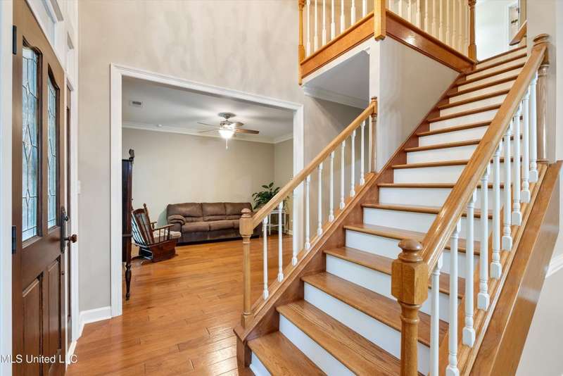 6880 Autumn Oaks Dr | Olive Branch, MSClassic charm, modern updates, and an incredible 900 SF detached workshop come together beautifully on this peaceful 1.5-acre lot in Olive Branch. Featuring 5 bedrooms and 3.5 baths across more than 3,800 square feet, this home is designed for comfort, flexibility, and everyday living.Inside, a welcoming two-story foyer opens to warm hardwood floors and inviting gathering spaces. The updated kitchen features quartz countertops, stainless appliances, and a plentiful open counters that connects effortlessly to the breakfast area and great room with a brick fireplace. The oversized main-level suite offers comfort and privacy . . . and includes a huge walk-thru closet, dual sinks, large shower, and beautiful claw-foot soaking tub. Upstairs you'll find additional bedrooms and a flexible bonus room ready for work, play, or guests.Out back, the property feels like a private retreat with mature trees, a spacious patio, and an impressive detached workshop with electricity that's perfect for hobbies, storage, or small business needs. The 900sf workshop includes two 10x10 overhead doors, 110 & 220 wiring, and a covered storage extension. Add in two driveways with extensive parking, irrigation, heavy trim throughout, and thoughtful updates, and you've got a property that's as functional as it is beautiful.Located within the Desoto Central school zone and close to parks, shopping, and dining, this home blends quiet surroundings with convenient access to everything Olive Branch has to offer.Schedule your private tour today of 6880 Autumn Oaks.