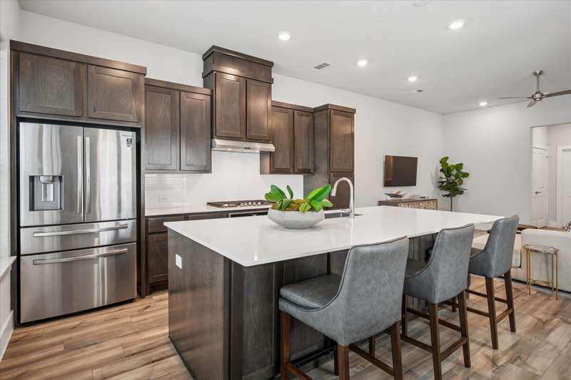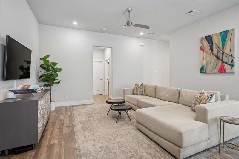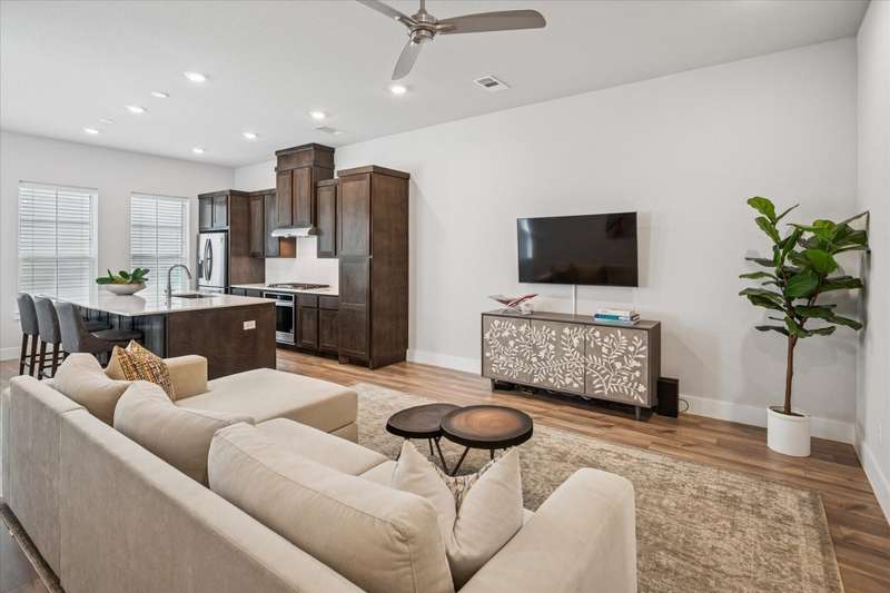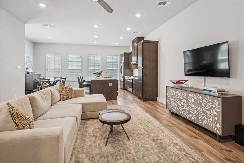 Modern and move-in ready! This stunning, meticulously maintained three-story townhome in East Dallas offers the perfect blend of style, function and location. Built in 2021, the home welcomes you with sleek, stained concrete flooring on the first level, where youll find two bedrooms with a shared full bath, an oversized storage closet tucked under the stairs and access to a spacious two-car garage. Upstairs, the second floor boasts a bright and airy open-concept living space filled with natural light. The contemporary kitchen features stainless steel appliances, shaker style cabinets and flows seamlessly into the dining and main living areasideal for entertaining. This level also includes a convenient half bath, laundry area, and the private primary suite with a beautifully appointed bathroom. The third floor is a true showstopper, offering a huge additional living area and a large covered balcony with sweeping views of the downtown Dallas skylineperfect for relaxing or hosting guests. Located just minutes from downtown, Baylor Medical Center, and some of Dallas best shops and restaurants, this low-HOA community is perfect for a lock-and-leave lifestyle. This urban retreat has it all!