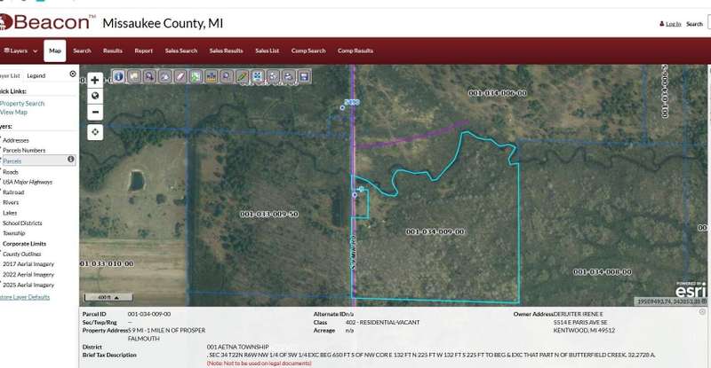 33 acres with Butterfield Creek River frontage, park like settings, and woods filled with wildlife! This 32.95 acre vacant land parcel offers an incredible opportunity to own recreational area that has it all. Property has a couple cute camping cabins and a 5th wheel, as well as an outhouse and well! Located just outside of Falmouth, Michigan, this property puts you right in the heart of outdoor adventures, you will have endless options for year-round activities. The land features a diverse mix of habitat that appeals to outdoor enthusiasts and wildlife alike. Sections of lowland provide thick cover for deer, turkeys and small game, while higher ground is covered in bigger timber. Deer signs, and game trails are evident throughout the property, making this a strong hunting location. A trail system makes navigating the property simple. Whether you're interested in trail riding, fishing, hunting or camping, this property delivers on all fronts. With its combination of river..more diverse terrain and prime location, this parcel is ideal for anyone seeking a multi-use property in central Michigan. Whether you're planning weekend getaways, a hunting camp or simply a quiet escape, this property is set up and ready for you.