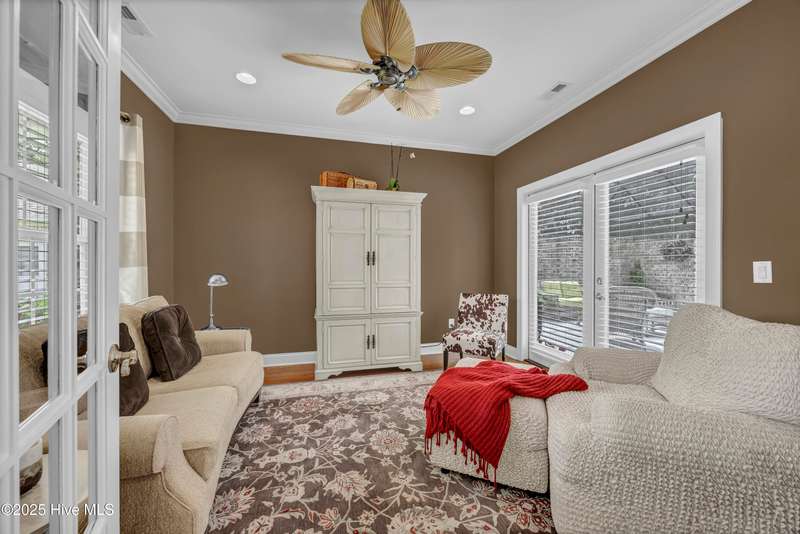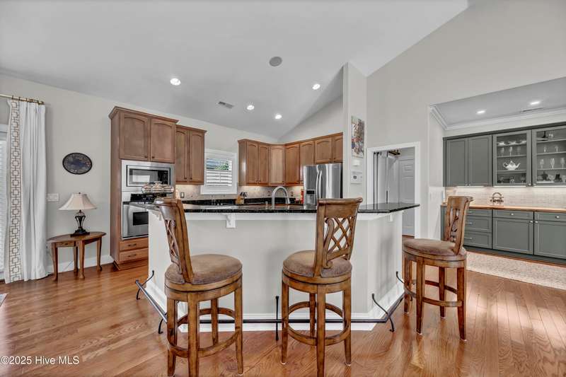 Located in a cul-de-sac within the Jefferson Landing neighborhood of Brunswick Forest, this beautifully updated, move-in ready home offers 2,227 sq ft of thoughtfully designed living space with tasteful upgrades throughout. The 3-bedroom, 2.5-bath layout includes select accessibility modifications, such as widened doorways and halls in certain areas, offering added functionality without sacrificing style.The main living area features soaring vaulted ceilings that create an open and airy feel, seamlessly connecting to the kitchen and dining areas. The kitchen boasts granite countertops, stainless steel appliances, and abundant cabinet space -- plus a custom-installed dry bar perfect for entertaining. A versatile office or flex space sits at the front of the home, ideal for working remotely or relaxing.The spacious primary suite includes a walk-in closet and a spa-like bathroom with a soaking tub, tiled walk-in shower, and double vanity. Engineered hardwood floors can be found throughout the home. Outdoor living is a highlight, with two distinct spaces: a covered lanai on one side of the home and a separate patio with a pergola on the other -- offering flexibility for both relaxing and hosting. Additional features include an epoxy-coated garage floor and freshly painted garage walls. Updated mechanicals include a new HVAC system in 2018 and hot water heater in 2021.Set on a 0.31-acre lot in one of the area's most popular master-planned communities, this home offers comfort, quality, and convenience in a sought-after location just minutes from downtown Wilmington.