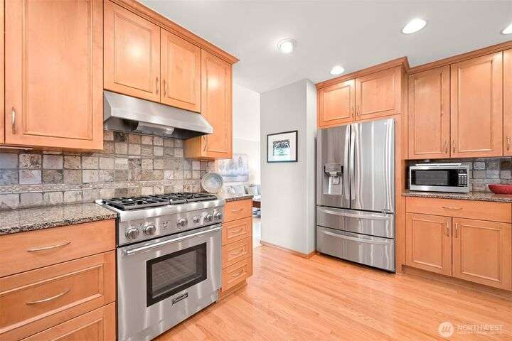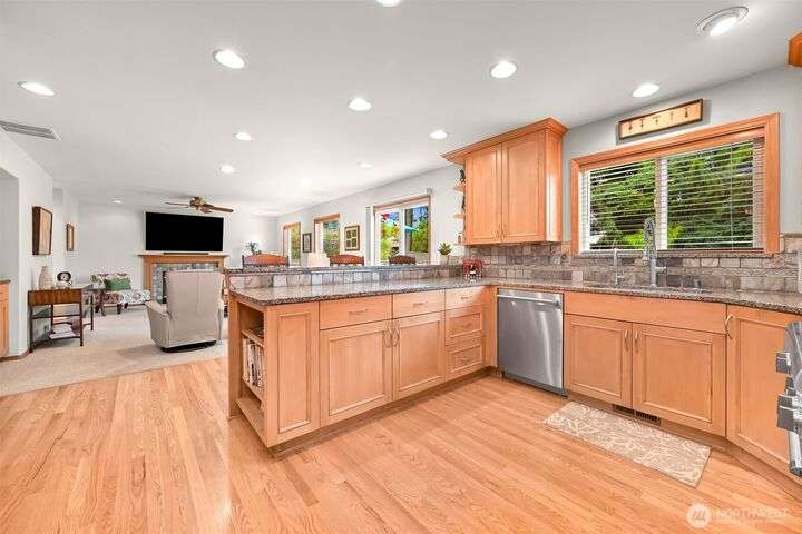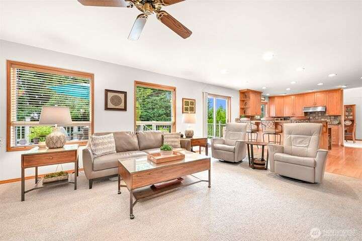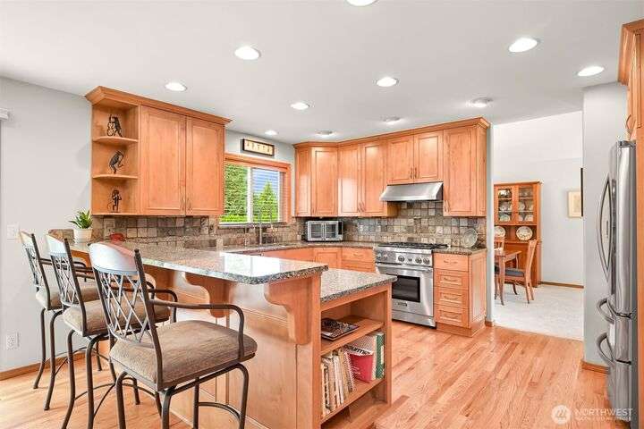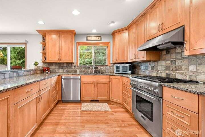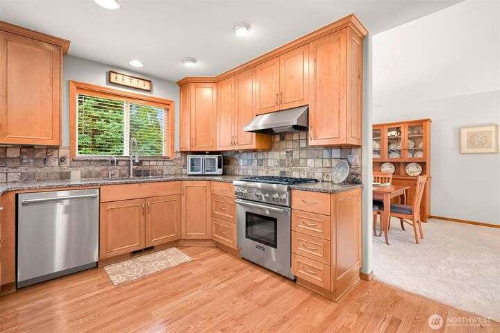 Welcome to this stunning single-family home in sought-after Kelley Ridge! Situated on a spacious lot, this home features a grand entry with soaring vaulted ceilings that continue into the formal living & dining areas. The chef’s kitchen is a dream with slab granite counters, stainless steel appliances, & an eating bar that opens to a generous family room with a cozy gas fireplace. Upstairs you'll find three well-sized bedrooms, including a luxurious primary suite with double doors, a spa-like en-suite bath with soaking tub, & a walk-in closet. In the crawl space, there is a built in work bench & ample storage. Enjoy beautifully landscaped outdoor spaces & a fully finished, powered studio space—ideal for a home office, gym, or creative area.