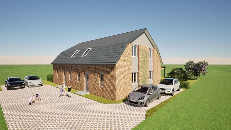 New-build semi-detached house in Leezen - first occupancy from winter 2025/2026 Welcome to your new home! This modern new-build semi-detached house in a classic rear development is being built in an attractive location in Leezen (the semi-detached house on offer here faces the driveway at the rear). The house will be built using energy-saving timber frame construction with facing brick and combines sustainable construction with contemporary living comfort. Completion is scheduled for December 2025 or January 2026 (depending on the weather). With a living area of approx. 121 m², the house offers plenty of space for families or couples who value modern and comfortable living. First floor Spacious living and dining area with open kitchen Direct access to the sunny terrace and private garden area Storage room on the terrace as a practical separation from the other half of the house Guest WC Utility room with additional storage space Upper floor The solid wood staircase leads to three bright and well-designed rooms - ideal as a bedroom, children's room or study - as well as a modern shower room. The loft is not developed, but can be accessed via a folding hatch ladder and used as storage space. Energy efficiency & equipment Triple-glazed windows Innovative window ventilation system Underfloor heating for a pleasant living climate Modern monobloc heat pump Plus points of the location Leezen impresses with its family-friendly infrastructure: shopping facilities, kindergarten, schools and leisure activities are located directly in the village or in the surrounding area. Thanks to the good transport links, you can reach the district town of Bad Segeberg and the cities of Hamburg, Lübeck and Kiel quickly and easily. Summary: This energy-efficient new-build semi-detached house in Leezen combines sustainable construction, modern fittings and a family-friendly location. An ideal home for anyone who wants to fulfill their dream of owning their own home in the countryside.