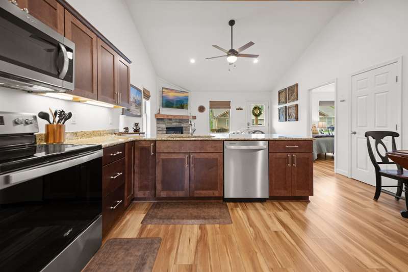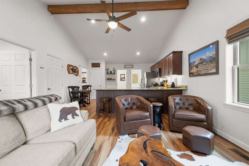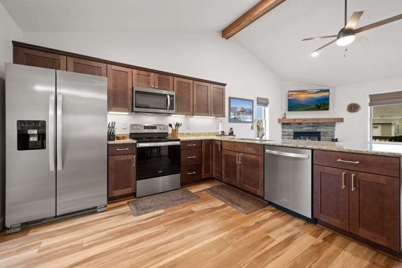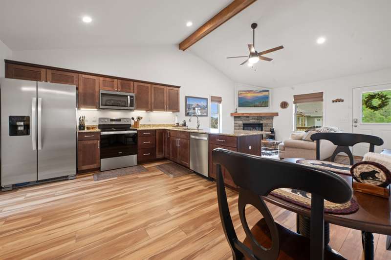 Discover the charm of this property located on the peaceful outskirts of Boone. Situated near the Greenway, this home offers both convenience & accessibility, short drive to Appalachian State University, local medical center, & all your essential needs. This townhome features 2 spacious bedrooms & 2.5 bathrooms, designed for easy single-level living while showcasing long-range views of the surrounding landscape. The open-concept layout is flooded w/ natural light, complemented by LVT flooring that blends style w/ functionality. A stone gas fireplace serves as the centerpiece, providing warmth for cozy evenings. Step out onto the private deck, and add your outdoor furniture & a grill, making it the perfect spot to unwind. The kitchen boasts elegant granite countertops w/ ample workspace & brand-new hardware. Stainless steel appliances complete the space, ensuring seamless cooking experiences. This home offers custom upgrades during construction to enhance its aesthetic. The primary bathroom features a custom tile shower w/ glass sliding door that elevates your daily routine. A decorative wood beam adds a touch of rustic character/ additional upgrades throughout, including window treatments, upgraded doors for durability, & high-end ceiling fans to ensure comfort. Furthermore, the versatile attic space provides a perfect solution for extra storage needs or can be transformed into additional bonus space. Residents benefit from low monthly fees, granting access to 80 acres of green space, a dog park, & various community services that enhance the overall living experience. This remarkable property offers you the opportunity to embrace a variety of lifestyles, whether as a starter home, second home, residence for students, or an investment property. The property owners' association manages the upkeep, allowing you to travel freely & spend more time w/ your loved ones. Don't let this one pass! Furniture is negotiable.