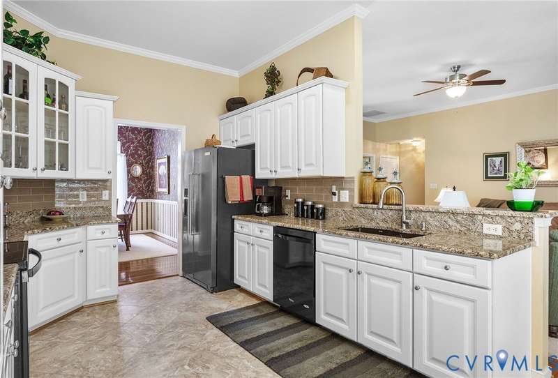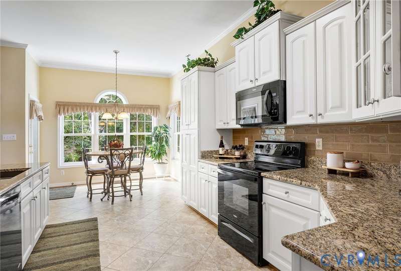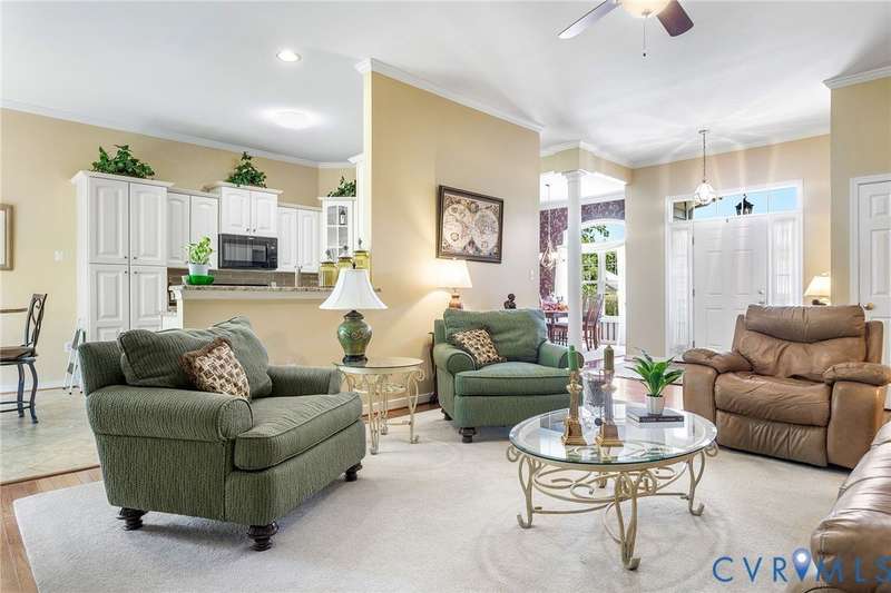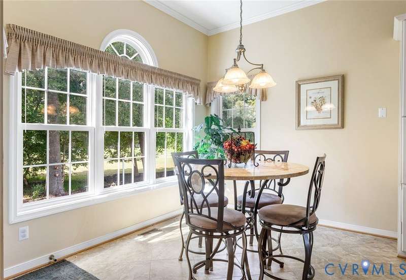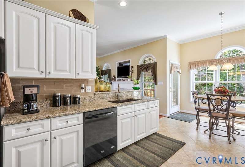 Welcome to the golf course community of Birkdale in Chesterfield! This beautiful ranch-style home has been meticulously maintained, is located at the end of a cul-de-sac and offers the convenience of first-floor living with a side-load two-car garage. The foyer opens into a large living room with a gas fireplace, perfect for gathering or relaxing at the end of the day. The formal dining room is perfect for entertaining and has detailed moulding and trim. The kitchen has been thoughtfully updated with granite countertops, newer appliances (brand new refrigerator and microwave), newer tile backsplash, and fresh paint. An eat-in area provides plenty of space for everyday meals while enjoying views of the backyard and golf course. The primary bedroom is a comfortable retreat with a vaulted ceiling, bay window overlooking the rear yard/golf course, walk-in closet, and private bathroom featuring a double vanity, garden tub, and separate shower. Two additional bedrooms are located on the main level, both with carpet and easy access to a full bath. Upstairs, a fourth bedroom over the garage offers great flexibility-ideal for a home office, playroom, or guest space. The rear covered deck is a standout feature, offering a shaded spot to relax while overlooking the 7th tee box of the golf course. The yard has been beautifully cared for and includes an irrigation system to keep it looking its best. Additional features include a tankless water heater and a well-maintained exterior. The current owners have taken great pride in their home and it shows! You don't want to miss this one.