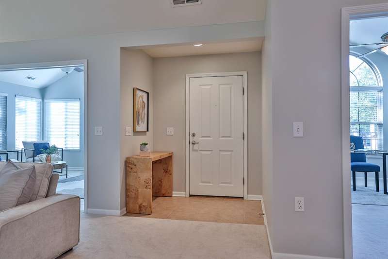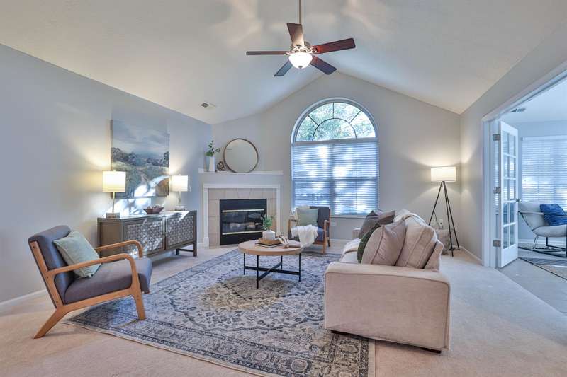Premium location within the community offering a view of the gorgeous clubhouse & the meticulously landscaped entrance & gazebo. Impeccably maintained & gently lived in this open-concept condo offers soaring cathedral ceilings & fresh paint throughout. The heart of the home is a spacious kitchen featuring an abundance of cabinetry complimentary tile backsplash & newer SS appliances Furnace & AC 2024 Water Heater 2025. The primary suite is thoughtfully designed w/adult-height dual vanities & updated countertops Bath Fitter's shower insert & a generous walk-in closet. All mechanicals are newer the ductwork has been professionally cleaned & UV tinting has been added the windows for comfort & efficiency. Step outside to enjoy manicured landscaping complete w/a sprinkler system. Easy access to community amenities. Located just moments from the clubhouse fitness center & the vibrant Deerfield Towne Center-including the exciting new 50 WEST Development. An absolute move in ready!