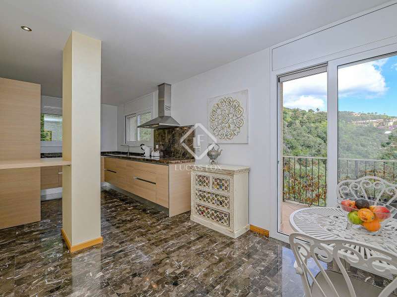 Lucas Fox presents this detached house in one of the most privileged areas of the Costa Brava, in Platja d'Aro, Girona. Located in the natural surroundings of the Masnou development , it offers privacy and proximity to the town centre and the beach, just 7 minutes away. This exclusive 447 m² detached house sits on a spacious 1,626 m² plot . Renovated in 2019, it stands out for its elegant design, large windows, mountain views, and high-end finishes such as marble and parquet flooring. The property is spread over three floors. On the main floor , there is a spacious entrance hall that leads to a bright living-dining room with a fireplace, a fully equipped separate kitchen with access to a balcony, and a guest toilet. From this floor, you can access the exterior area, which offers a well-kept garden and a private pool surrounded by nature. On the upper floor is the night area, consisting of four bedrooms: one single, two doubles, and the main bedroom with a private bathroom and dressing room. All bedrooms have access to the exterior, either to a balcony or a terrace, and are complemented by two complete bathrooms . The ground floor offers additional spaces such as a play area with access to a covered porch, a wine cellar, a utility room, a machine room, a storage room , and a toilet. The possibility of installing a lift is being considered, which would increase comfort and accessibility. This property also has two parking areas within the grounds. It also features underfloor heating and oil-fired radiators. The property boasts open views of the garden, mountains, and sea, making it ideal for those seeking a natural setting without sacrificing the amenities and leisure options that Platja d'Aro offers year-round. In short, this property is ideal for families seeking space and privacy, as well as for investors seeking a high-end property in one of the most sought-after locations on the Costa Brava.