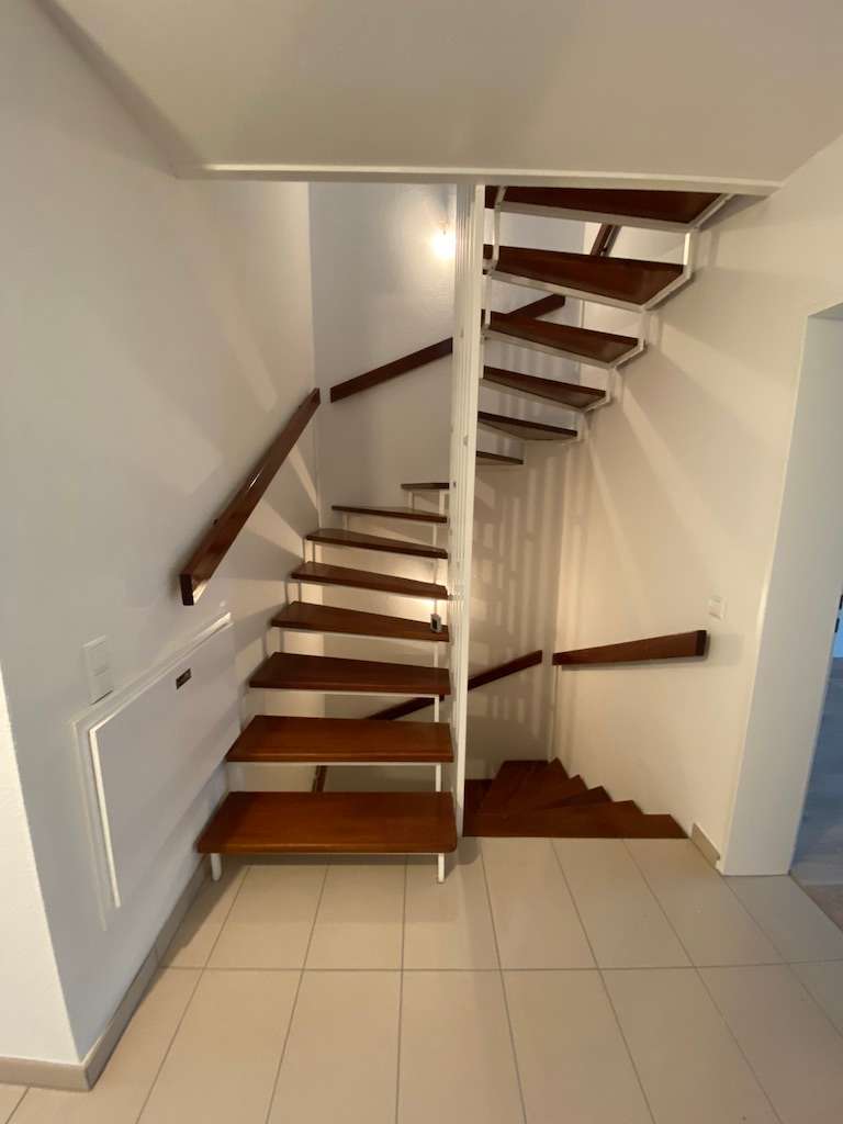 For sale is a modernized mid-terrace house that was built in 1978 and extensively renovated in 2022. The property is situated on a plot of approx. 265 m² and offers a living space of approx. 147 m². The house is perfect for families who appreciate high-quality furnishings and a well-thought-out room concept. Upon entering the house, you enter an inviting hallway that leads to the various areas of the property. The kitchen offers ample space and a variety of options for installing a modern fitted kitchen. Adjacent is the open-plan living room, which offers direct access to the terrace with awning. This extends the living space into the outdoor area and is ideal for sociable evenings or relaxing hours outdoors. Two bedrooms are located on the upper floor. There are three bedrooms in total, all of which are generously proportioned and offer enough space for individual furnishing ideas. Two modernized bathrooms ensure comfort and convenience. High-quality materials and contemporary installations were installed here as part of the latest modernization work in 2022. A large attic room can be converted into an additional room. The house impresses with its extensive renovation measures, which were carried out in 2022. These include new floor coverings, completely renovated bathrooms, modern electrics, new windows and a new front door. These innovations contribute to the high energy efficiency and functionality of the house. The central heating system, which was renewed in 2011, provides cozy warmth throughout the building. In addition, the roof on the eastern side was renewed in 2004, which also contributes to the longevity and value retention of the house. For additional storage space, there is a cellar that provides ample room for household appliances and seasonal items. A garage and an additional parking space round off the offer and provide protection for your vehicle as well as storage space for bicycles or garden tools. The location of the house offers excellent access to the transport network and a variety of shopping facilities, schools and leisure activities in the immediate vicinity. This makes daily life both convenient and varied. This property offers you the opportunity to invest in a high-quality home that is future-proof and well-equipped thanks to its modernizations. Arrange a viewing today to see the benefits of this well-kept mid-terrace house for yourself.