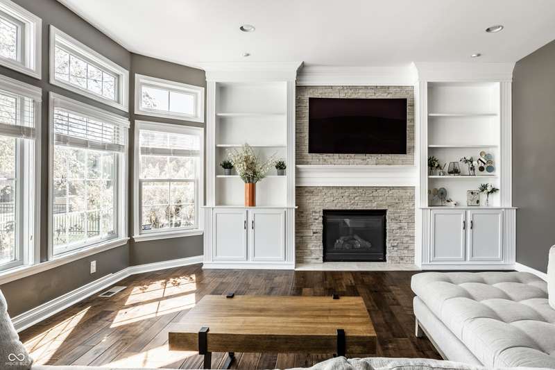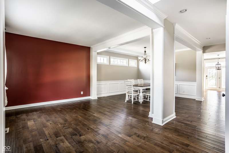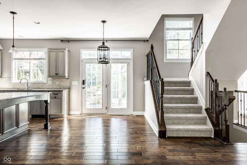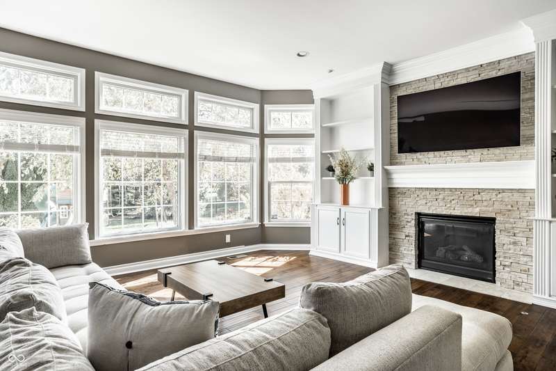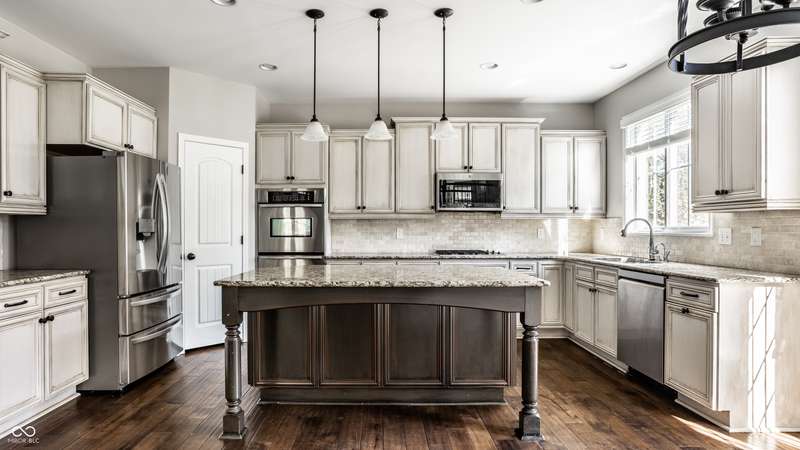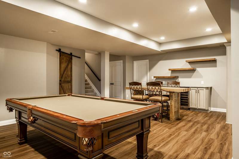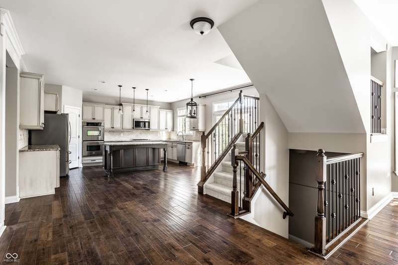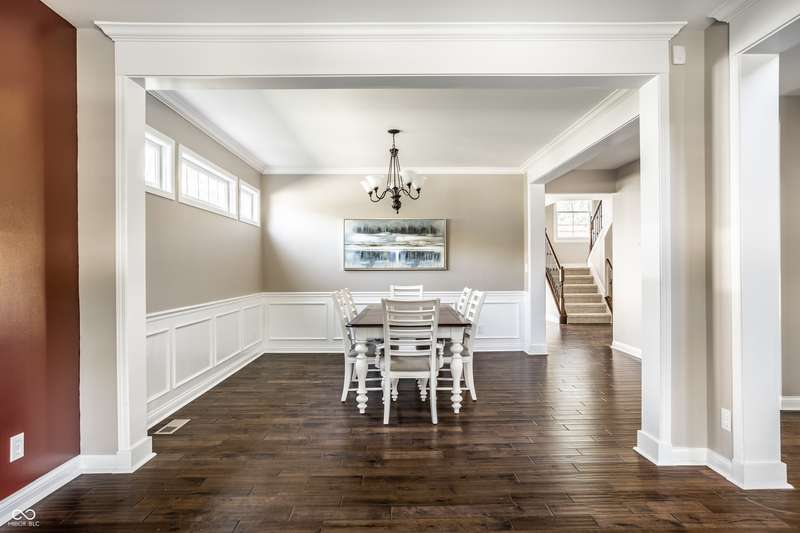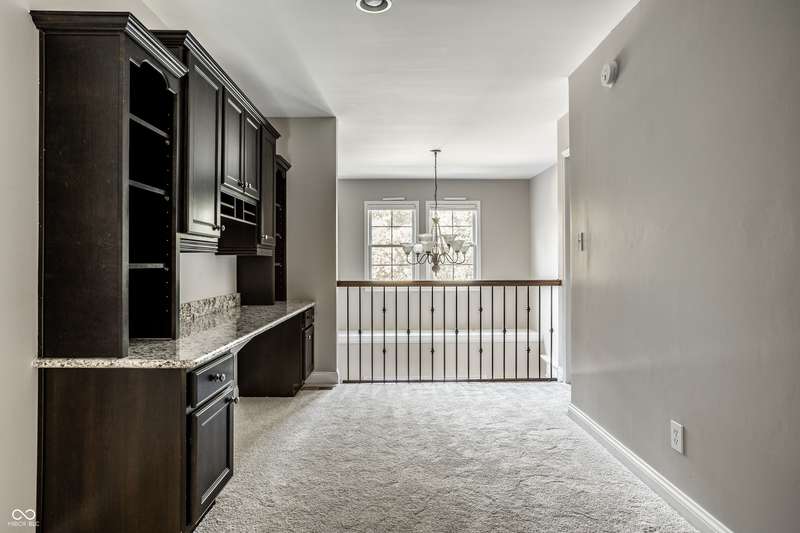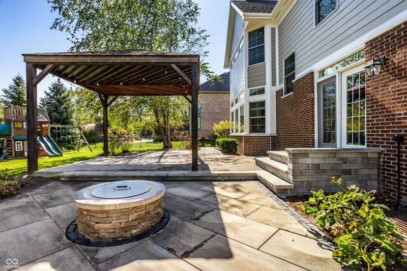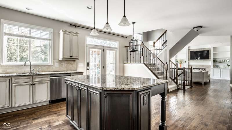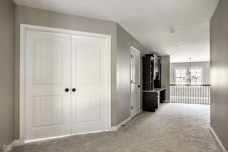 Exceptional curb appeal welcomes you to this rare 5-bedroom, 4.5-bath home on the desirable west side of Carmel. Step through the grand two-story entry into a bright, open layout that perfectly blends elegance and comfort. The formal dining room with wainscoting and transom windows opens to a versatile living or flex room, ideal for entertaining or quiet conversation. Throughout the main level, 9-foot ceilings and hand-scraped maple hardwood floors create warmth and sophistication. The gourmet kitchen impresses with antique white cabinetry, granite countertops, a large center island, stainless steel appliances (including double ovens), and a breakfast nook that flows into the sun-filled great room with a stone gas fireplace, custom built-ins, and a wall of windows overlooking the private backyard. A spacious home office with French doors offers privacy while staying connected to the main living area. Upstairs, new carpet leads to a loft with built-ins-perfect for a second office or study area. The luxurious primary suite features a cozy sitting area, while the spa-inspired bath offers dual vanities, a garden tub, glass shower, and his-and-hers walk-in closets. Three additional bedrooms include a Jack-and-Jill bath and a private en suite. The finished basement boasts 9-foot ceilings, luxury vinyl plank flooring, a wet bar with granite countertops and wine rack, stone fireplace, and barn doors-plus and a pool table. A movie room, fifth bedroom, full bath, and ample storage complete the lower level. Step outside to a large open patio overlooking a fully fenced backyard, perfect for outdoor dining or entertaining. Located in award-winning Carmel school district, close to restaurants, shopping, and major highways for an easy commute to downtown Indianapolis. Don't miss your chance to own this stunning Carmel home-schedule a showing today! This is the one you've been waiting for!