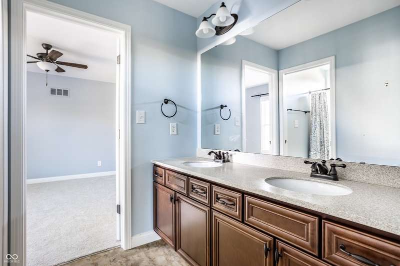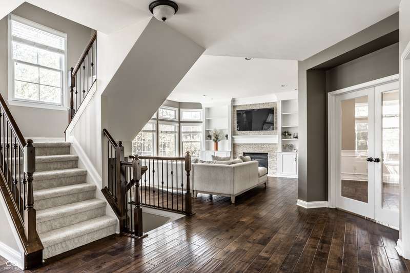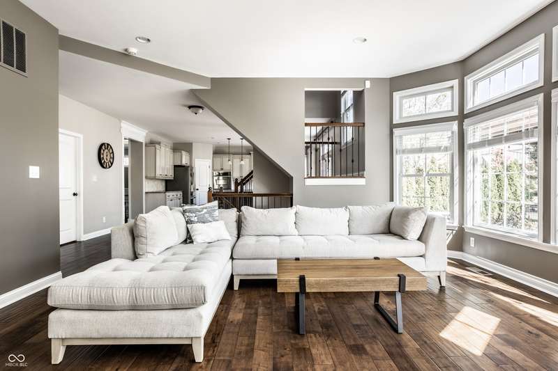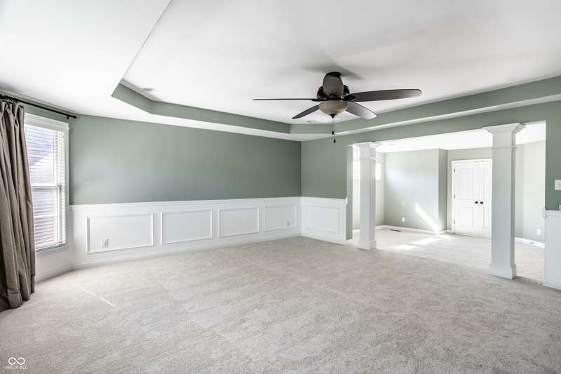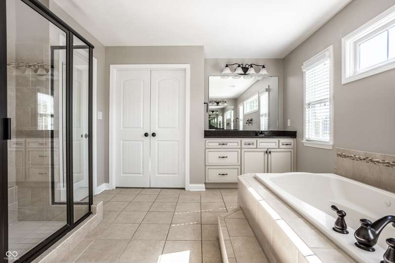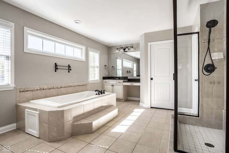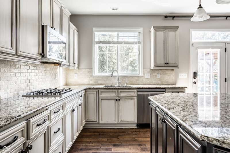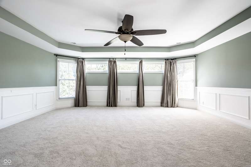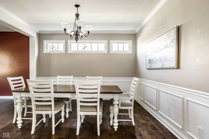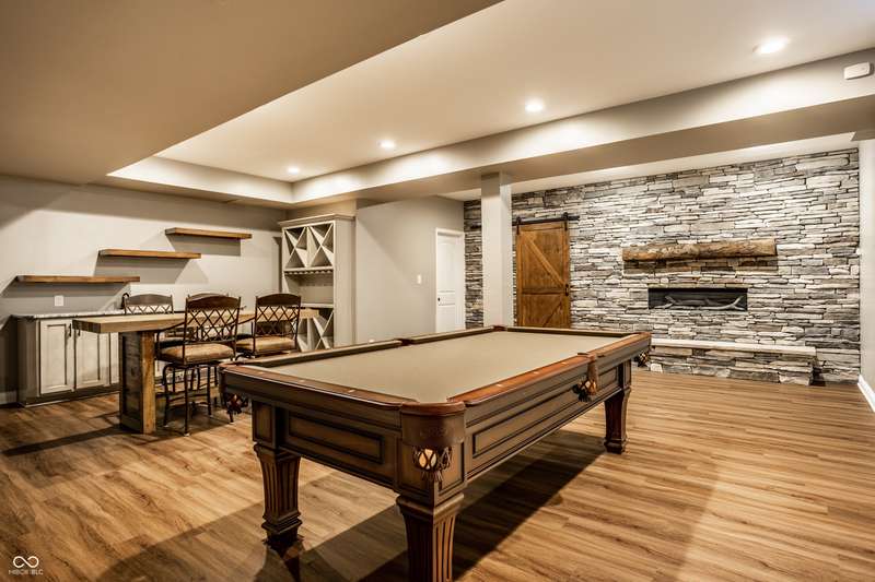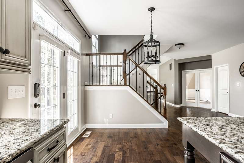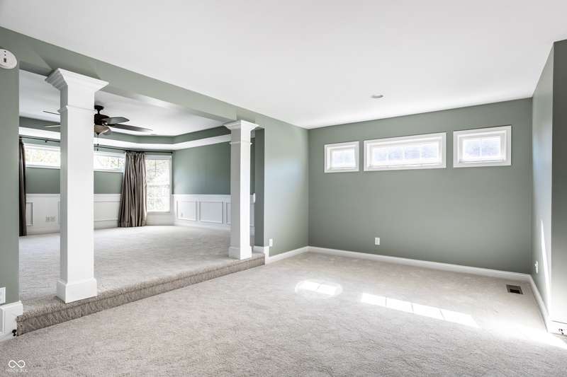 Exceptional curb appeal welcomes you to this rare 5-bedroom, 4.5-bath home on the desirable west side of Carmel. Step through the grand two-story entry into a bright, open layout that perfectly blends elegance and comfort. The formal dining room with wainscoting and transom windows opens to a versatile living or flex room, ideal for entertaining or quiet conversation. Throughout the main level, 9-foot ceilings and hand-scraped maple hardwood floors create warmth and sophistication. The gourmet kitchen impresses with antique white cabinetry, granite countertops, a large center island, stainless steel appliances (including double ovens), and a breakfast nook that flows into the sun-filled great room with a stone gas fireplace, custom built-ins, and a wall of windows overlooking the private backyard. A spacious home office with French doors offers privacy while staying connected to the main living area. Upstairs, new carpet leads to a loft with built-ins-perfect for a second office or study area. The luxurious primary suite features a cozy sitting area, while the spa-inspired bath offers dual vanities, a garden tub, glass shower, and his-and-hers walk-in closets. Three additional bedrooms include a Jack-and-Jill bath and a private en suite. The finished basement boasts 9-foot ceilings, luxury vinyl plank flooring, a wet bar with granite countertops and wine rack, stone fireplace, and barn doors-plus and a pool table. A movie room, fifth bedroom, full bath, and ample storage complete the lower level. Step outside to a large open patio overlooking a fully fenced backyard, perfect for outdoor dining or entertaining. Located in award-winning Carmel school district, close to restaurants, shopping, and major highways for an easy commute to downtown Indianapolis. Don't miss your chance to own this stunning Carmel home-schedule a showing today! This is the one you've been waiting for!
