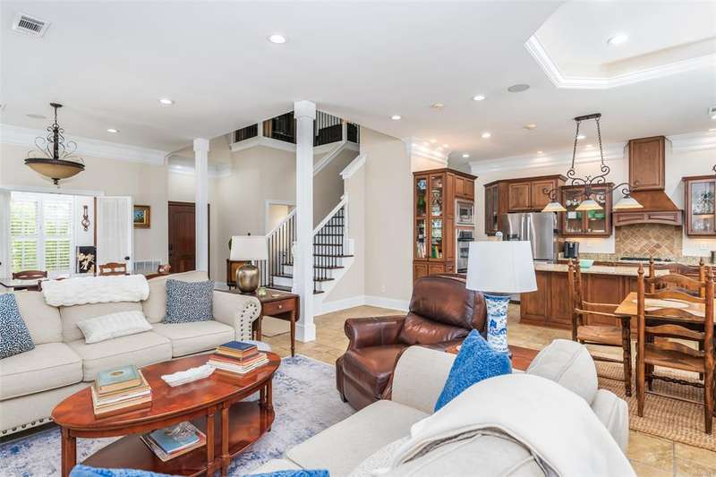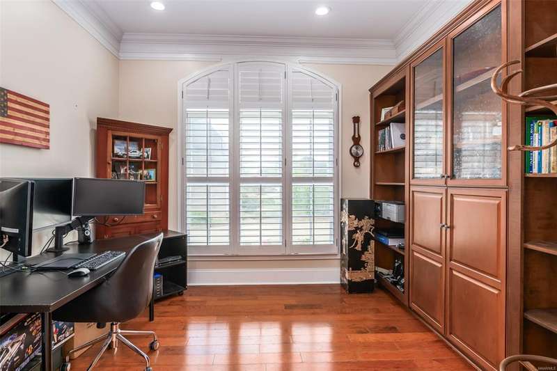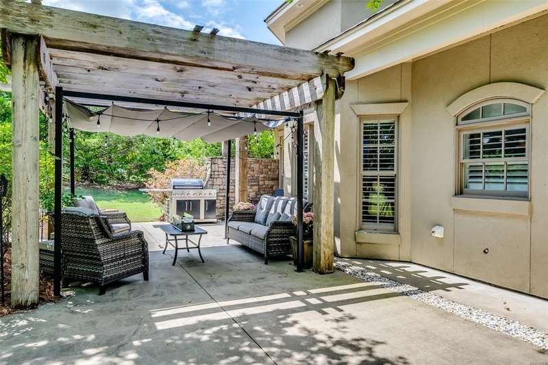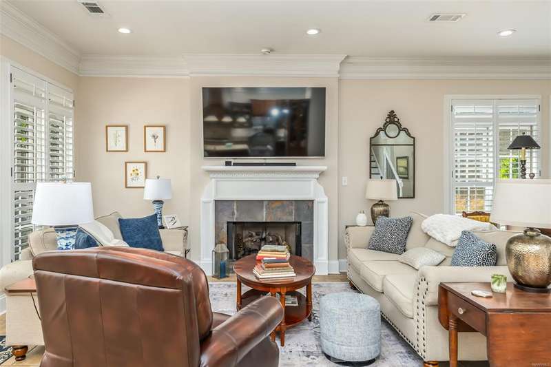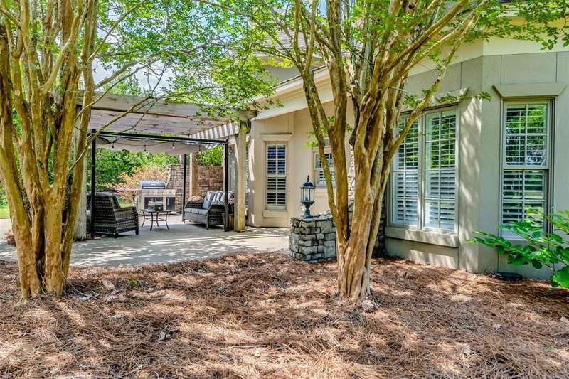Buyers, get a FULL year of HOA fees paid by the Seller with an acceptable offer! VA ASSUMABLE LOAN - 5.75 interest rate! Call for more info! Hurry to see this GORGEOUS home! Tucked away in a quiet cul-de-sac, it welcomes you with a long driveway leading to a spacious 2-car Garage. Inside, enjoy custom plantation shutters, hardwood flooring, & ornate trim. You'll find 3 Bedrooms, 2.5 Bathrooms, & a bright Study on the main floor. The open-concept layout includes a large Great Room with gas fireplace, a beautiful Dining Room & an oversized eat-in Kitchen with a large island—ideal for meal prep or entertaining. The Kitchen is a chef’s dream with TWO ovens, gas cooktop, built-in microwave, dishwasher, French-door refrigerator, under-cabinet lighting, recessed lights, deep sink, glass-front cabinets, & ample storage. The Main Suite features wood floors, an extra-large En-Suite Bath & walk-in closet. The Bath offers a double vanity, large jetted jacuzzi tub, tiled shower with bench, & private water closet. Upstairs is a large landing with built-ins, great as a library or 2nd office. The 2 upstairs Bedrooms share a Jack-and-Jill Bath. There are 2 attic spaces, a separate storage room in the Garage, & built-in hanging storage units that remain. Out back is a beautiful extended patio with a covered pergola and outdoor grill—perfect for relaxing. There's also a stunning brick fire pit area for get-togethers. The yard is irrigated by a system tied to the pond pumps—no extra water bill! You'll love the surround sound in the Great Room, Patio, & Main Bath. Extra upgrades include: RainSoft whole house water purification system, reverse osmosis tank under the sink for drinking water, purified water for the washing machine, Solar Snap insulation in the attic, & an Epoxy garage floor! This peaceful, private community blends nature & convenience. Homes like this one don’t come available often—don’t miss your chance! Visit www.groveparkliving.com to see ALL the fabulous amenities!