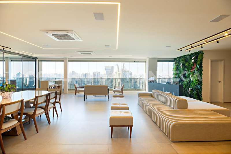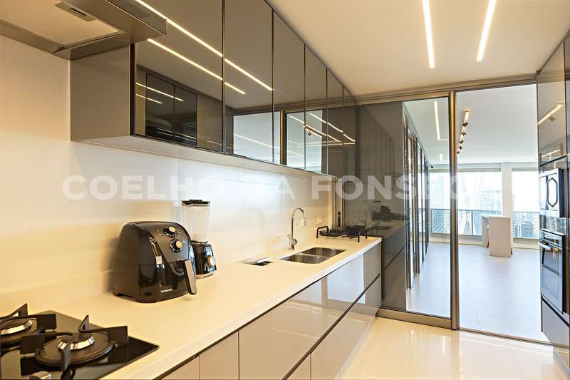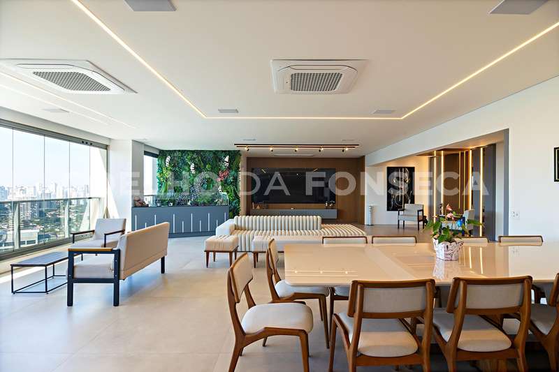Apartamento no bairro Real Parque com 211m² área privativa/útil, 3 dormitório(s), 3 suíte(s), 3 vaga(s), 4 banheiro(s), escritório, terraço, depósito, mobiliado (a), ar condicionado, dep. de empregados, reformado (a), varanda gourmet, pé direito duplo.