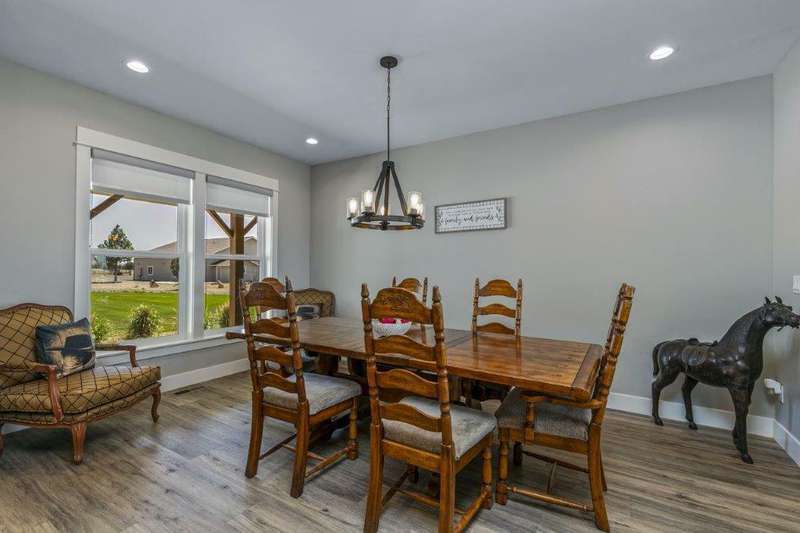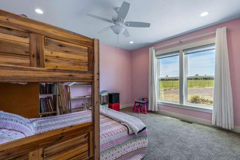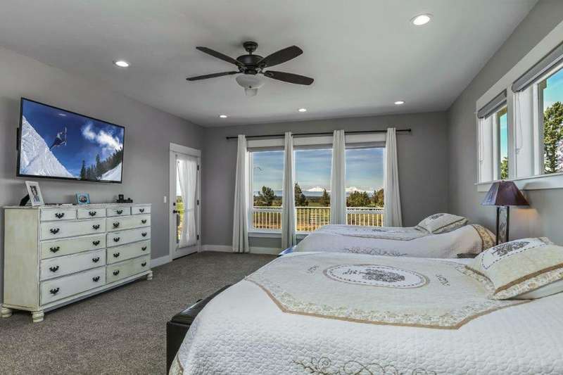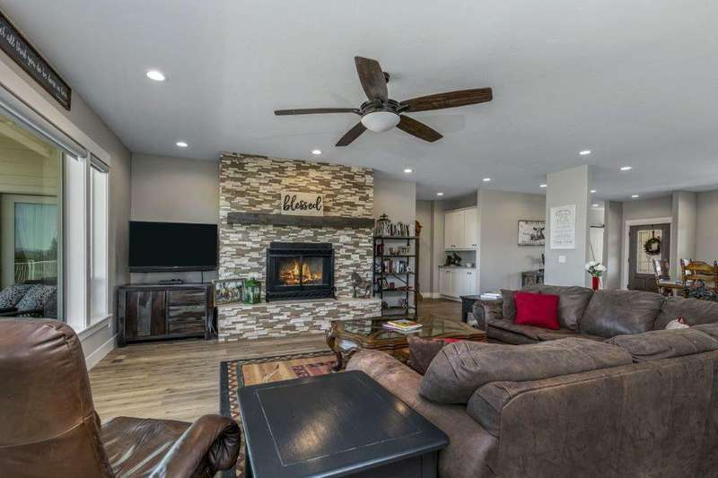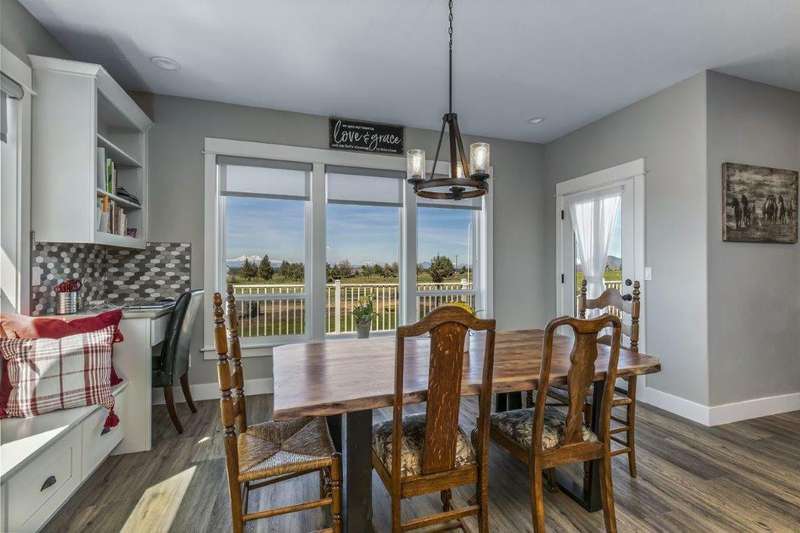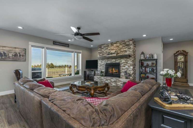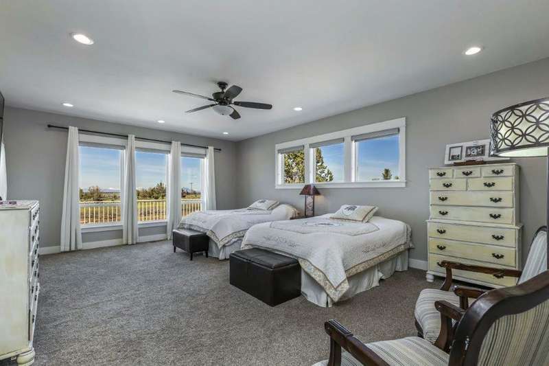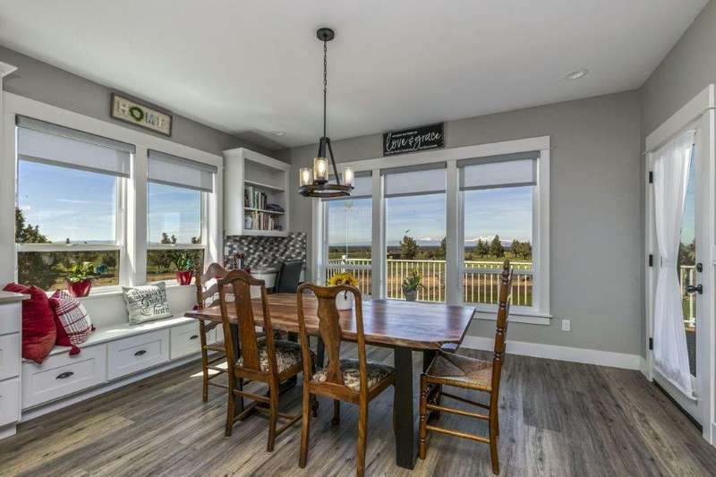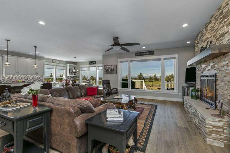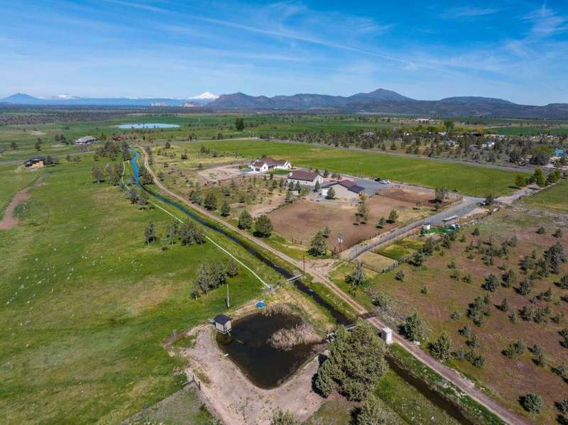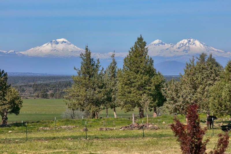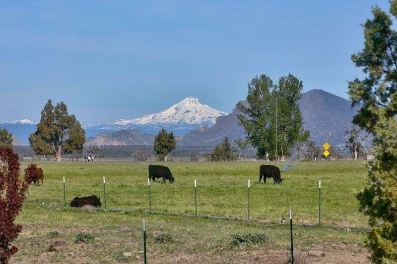 Situated on 94.69 acres this farm is well laid out and turnkey. With stunning Cascade Mountain and Smith Rock views this custom home offers an open floor plan and comfortable spacious living. Step inside and you will find a formal dining room, a great room with a fireplace, large breakfast nook complete with a window seat and a kitchen that is a delight with its 10 ft island, quartz countertops, 6 burner propane stove, double ovens, pantry and an abundance of cabinets. The primary suite has a soaking tub, oversized tile shower and double vanities and there are two secondary bedrooms. You'll also find an office/media room offering great space and a laundry room that will amaze you with its size, cabinets and storage. 2880 sqft insulated shop with guest quarters, RV hookups, 2 hay barns, pipe alleyways/corrals. 79 acres of COI water rights, 2 gps pivots, pods for front field & a large pond. Excellent location, great set-up and a first-rate farm. Currently in pasture & cattle grazing.