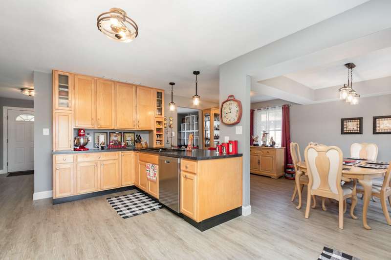 Hurry for a Home Sweet Home this holiday season! This beautifully updated 3 Bed 2 Bath Ranch Home with a 2.5 Car Garage, fenced yard and more is a MUST SEE! From the moment you walk in you will love the spacious foyer, the updated flooring throughout the home, and the natural light! The living room is cozy, and the wood fireplace is a great touch to cozy up to, on those soon to be chilly evenings. The kitchen has been completely updated in the last few years, now offering a lot of cabinet and counter space, stainless steel appliances, and peninsula! This is also a wonderful place to entertain, while being open to the formal dining room or head out back in the beautifully landscaped backyard with patio and firepit. The Master Bedroom is spacious as well and offers a private on-suite! There are so many notable features with this home like New Siding, Updated Windows (all but 2) and so much more! THIS HOME IS PRICED TO SELL so SCHEDULE YOUR SHOWINGS TODAY!
