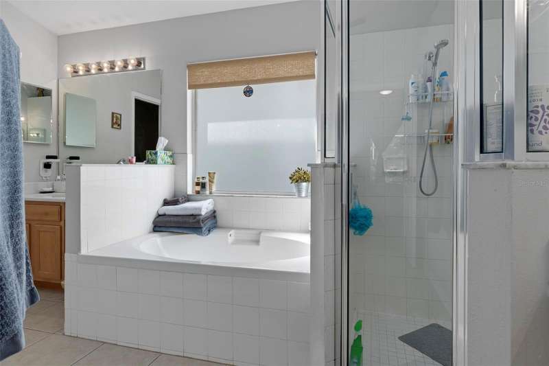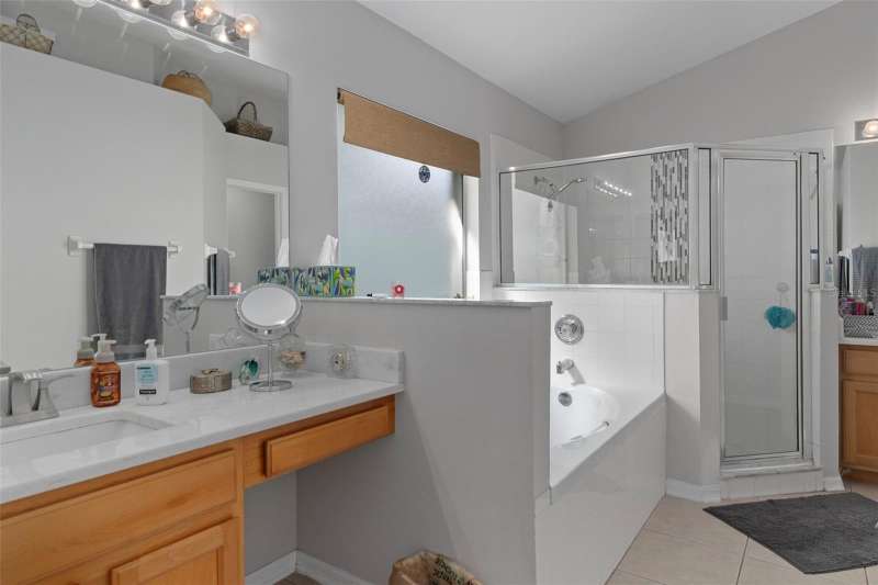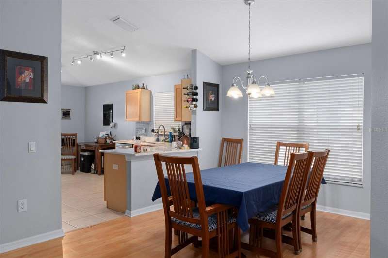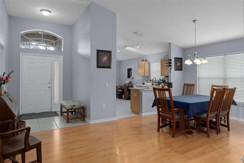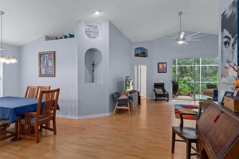 Under contract-accepting backup offers. Beautiful 3-Bedroom Home on Private Conservation Lot This stunning 3-bedroom, 2-bath, 2-car garage home is perfectly situated on a serene conservation lot with no rear neighbors, offering privacy and peaceful views of the wooded preserve. Step inside to an inviting open great room with vaulted ceilings, laminate flooring, and sliding glass doors that fill the space with natural light. The full-size dining room is ideal for entertaining, while the extra-large kitchen features granite countertops, stainless steel appliances, abundant cabinetry, and a cozy breakfast nook. The spacious master suite boasts a walk-in closet and private access to the screened lanai. The luxurious master bath offers dual granite vanities, an oversized garden tub, and a separate step-in shower. This desirable split-bedroom floor plan provides comfort and privacy, with the secondary bedrooms also featuring vaulted ceilings and laminate flooring. Relax outdoors on the covered, screened lanai and enjoy the tranquil setting that feels like country living while being minutes from everything you need. Located in the highly sought-after Meadow Pointe community, you’ll have access to parks, playgrounds, multiple swimming pools, tennis courts, and more. Conveniently close to excellent dining, entertainment, Wiregrass Mall, and Tampa Premium Outlets.