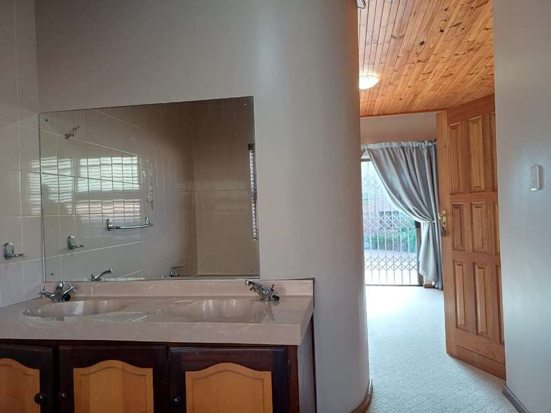 Nestled in an up-market neighbourhood in the heart of Vredenburg, this immaculate 3-bedroom face brick residence offers the perfect blend of comfort and elegance for the entertaining family. As you enter the house you get a spacious separate dining room to the left which connects directly to the kitchen. To the right, steps lead up to a private lounge which offers a cosy entertaining area with captivating views stretching all the way to Paternoster on clear, sunny day. A passageway leads to three generously sized bedrooms: Main bedroom is fitted with a full en-suite bathroom featuring a corner bath and wooden built-in cup boards. Second bedroom is fitted with ample wooden built-in cupboards and open to the peaceful patio through glass sliding doors. Third bedroom offers private access to the back of the property and boasts a newly renovated en-suite bathroom, ideal for guests or extended family. A full family bathroom and separate guest toilet conveniently serve the second bedroom and guests. The home also includes a large study leading from the kitchen, providing the perfect work-from-home space. Paved front yard with an automated double garage. Alarm and beams installed. Burglar bars and safety gates installed for added security.
