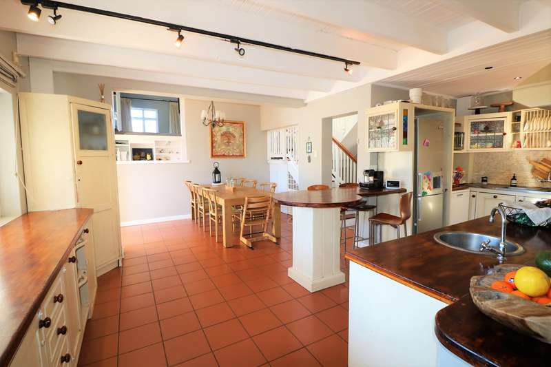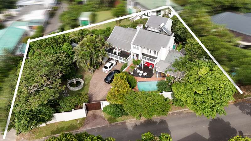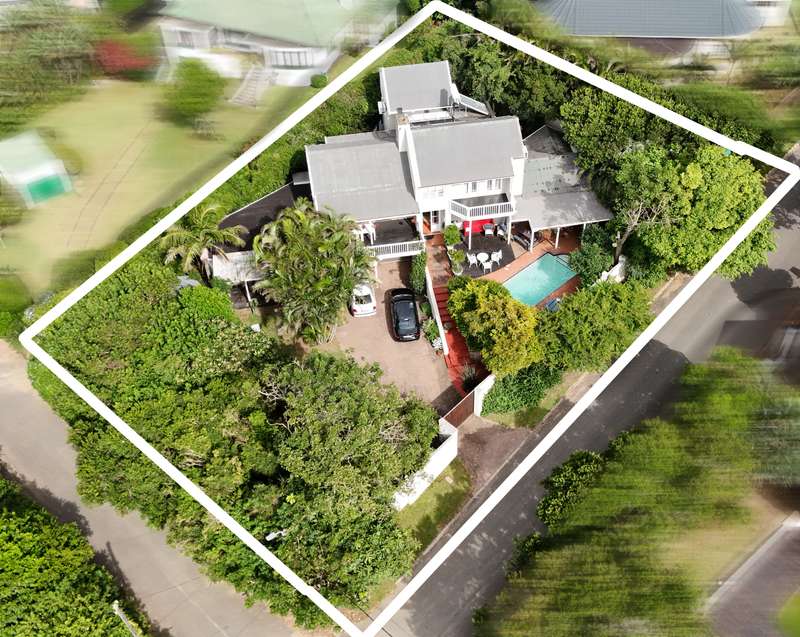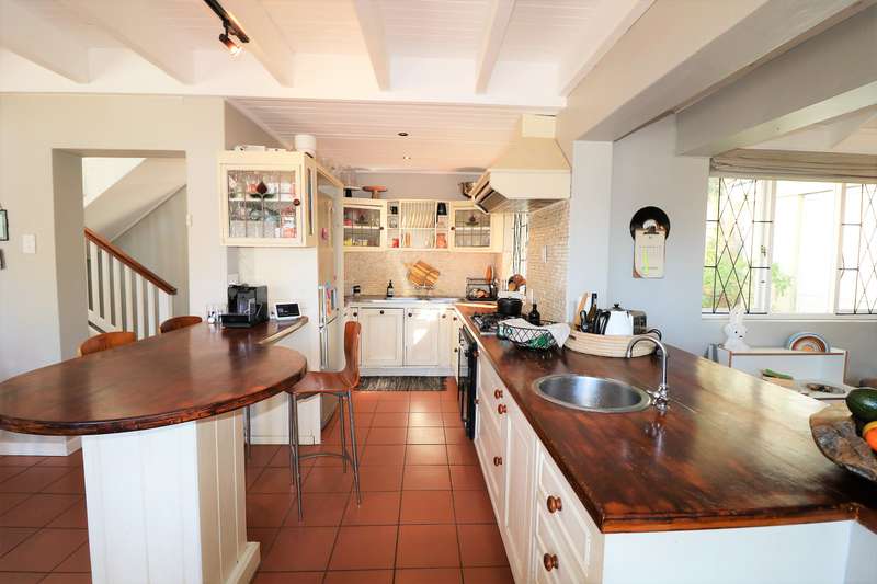 This Imposing family residence impresses most due to its park-like garden with mature trees and precious vegetation coupled with the utterly tasteful elegance of the house itself offers a family a world of tranquility, seclusion and is situated in Bonza bay overlooking the unspoilt natural beauty of the dunes and offers views of the ocean. Features are abundant throughout the functional living areas with beautiful exposed beams, the ground floor offers spacious living/dining with a sunny kitchen, the old woodstove for those cold winter nights in the lounge makes for a great ambience, the bottom level overlooks the landscaped garden and sparkling pool, also on this level it offers a bedroom with a bathroom, the home offers a double garage which offers the bonus of entering the home directly. Upstairs a further lounge with high ceilings & exposed beams, fireplace built in bookshelves & desk made out of mahogany wood specifically designed for this area, the double doors lead out onto the balcony overlooking the dunes and offers sea views. Two steps up and this level of the home offers 2 good-sized bedrooms, 2 bathrooms with the main bedroom having its own private deck and offers a stunning view of the sea! Connect with nature by birdwatching from the balcony, or take a stroll down to the beach. This home also offers a 1 bedroom flat that offers a small lounge, with a semi private kitchen area, with one bedroom and a bathroom. The harmonious scene is rounded off by a pond complete with a fountain, which is currently home to Comet gold fish at the moment!