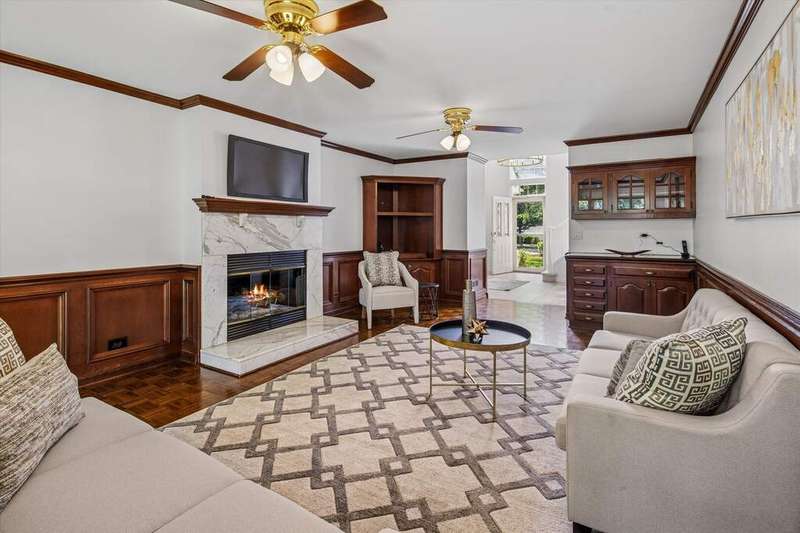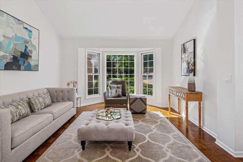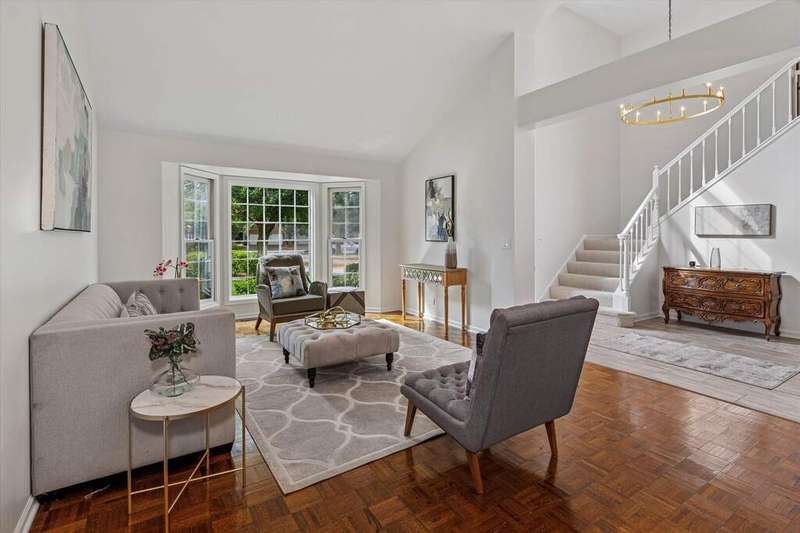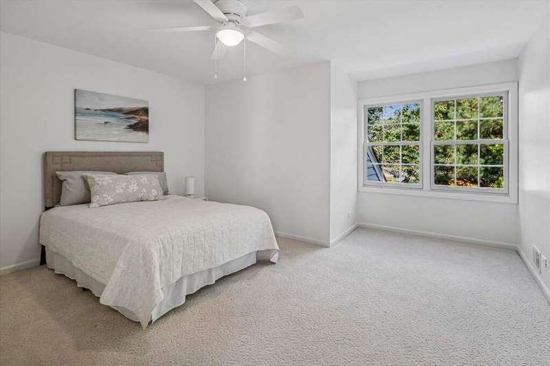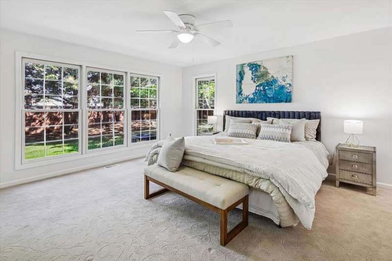 This stunning Covington model townhome in exclusive Princeton Village offers approximately 3,200 square feet of luxurious living space (excluding the garage), and is one of the rare Covington models with a finished basement that includes a spacious fourth bedroom, a full bath with steam shower, a wet bar, and new carpeting. Nestled on a sunny cul-de-sac, this property sits within a prestigious, private, and secured gated community featuring a gated entry with security, lush landscaping, a pool, and clubhouse. The main level is anchored by a grand two-story foyer and a spectacular great room with living and dining areas highlighted by a vaulted cathedral ceiling with skylight window that floods the space with natural light. A massive first-floor primary suite features a brand-new spa-like bathroom with a walk-in shower, soaking tub, Moen faucets, refinished cabinetry, and new lighting. A stylish powder room is also located on the main level. Upstairs, two additional bedrooms each feature new ceiling fans and share a beautifully updated full bath with modern fixtures and lighting. The finished lower level offers the fourth bedroom, a full bath with steam shower, and generous entertaining space with a wet bar and new carpeting. The kitchen has been beautifully updated with refinished cabinetry, new lighting, granite countertops, and a new cooktop with griddle. Appliances including the double oven, refrigerator, and dishwasher were replaced in 2014. A peninsula provides additional prep and seating space. The large laundry room offers new LG washer and dryer with pedestals, a new sink, and cabinetry. Throughout the home you'll find updated lighting, fresh paint, new switches and outlets, a gas log fireplace, and window replacements in both the basement and upstairs. Step outside to enjoy a brick stamped concrete patio, perfect for entertaining, grilling, or dining al fresco while overlooking the expansive shared green space. Additional updates include a new water heater, a new HVAC system with 3.5-ton air conditioner and chiller, a freshly painted garage with epoxy floor (scheduled this month), a new remote thermostat, updated entry locks with remote access, and a newer roof within the past five years. Exterior enhancements also include a new front bay window and front screen door (both scheduled this month). Conveniently located just north of The Glen Town Center with ample shopping, dining, and entertainment, plus access to the top-ranked Glen Club Golf Course. Experience life in prestigious Princeton Village today with this beautifully updated, move-in-ready 4 bedroom, 3.5 bath home.