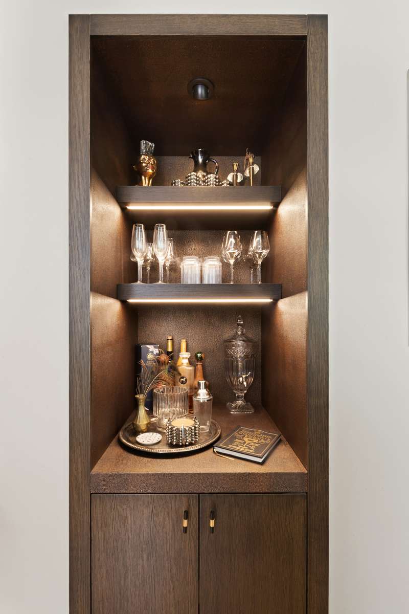 he upper level of this home showcases a open-concept living and dining area, highlighted by oversized windows, high ceilings, custom wood paneling, and a built-in dry bar-perfect for both relaxing and entertaining. The chef's kitchen is equipped with premium Bosch appliances, classic white shaker cabinetry, Caesarstone quartz countertops, and a breakfast bar. Also on this level is a sleek, full bathroom adorned with Carrera marble and generous storage completes this floor.
