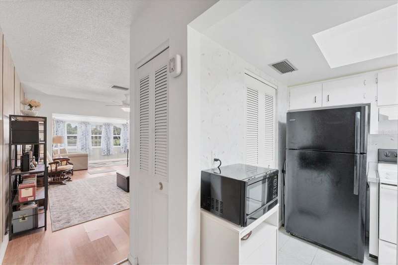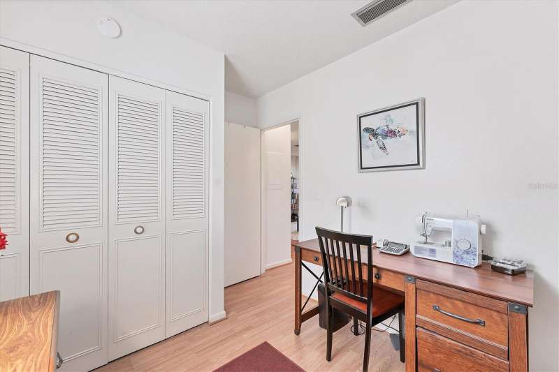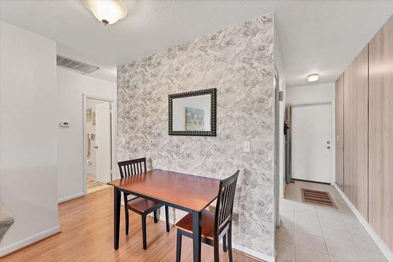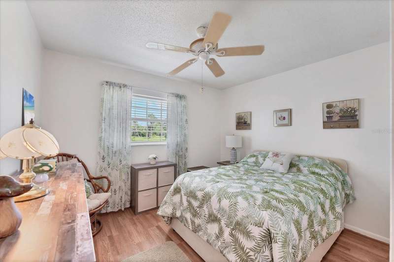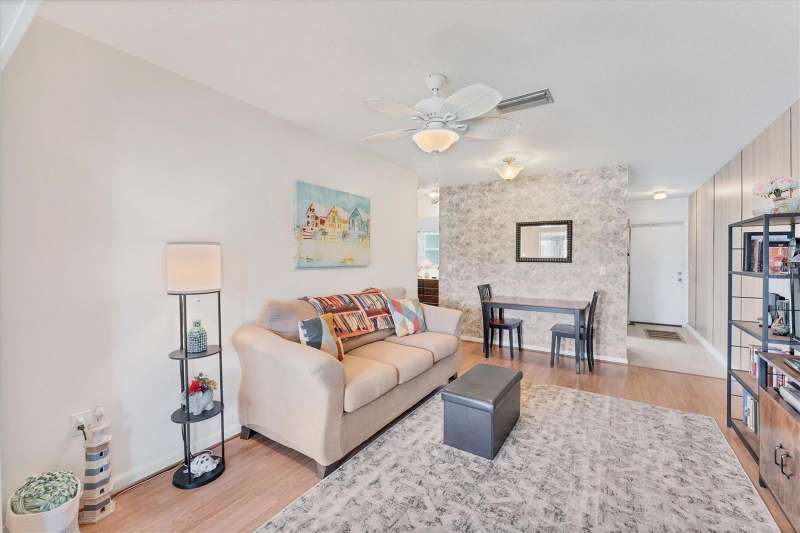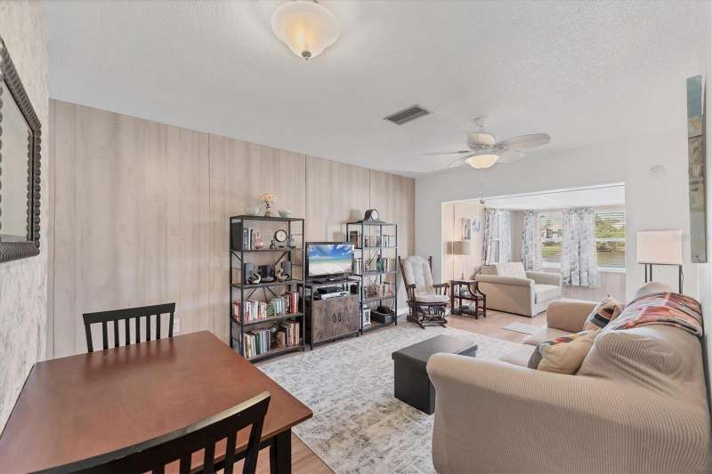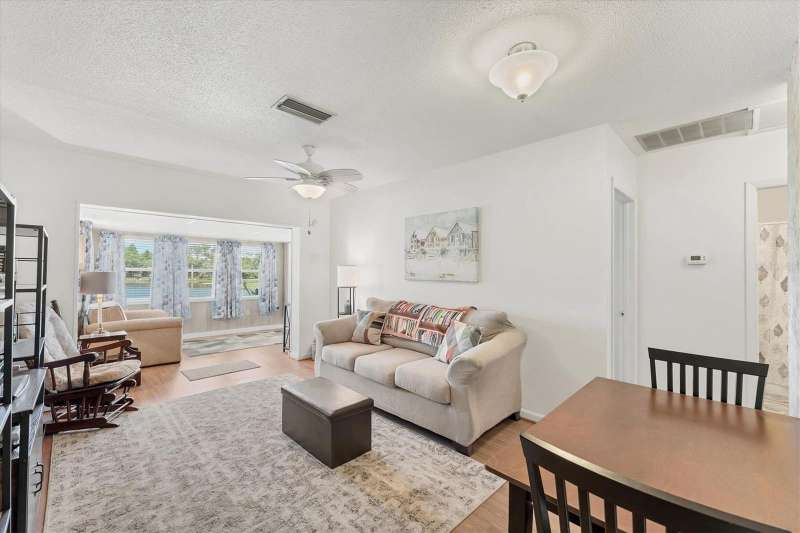Welcome to Oakwood Villas! 2-bedroom, 1-bath offering comfort, convenience, and pond views. Featuring newer engineered hardwood floors throughout, an open living/dining area, Florida room, and updated windows, this home is move in ready. Step outside to a brick paver patio overlooking the water, perfect for relaxing or entertaining. Covered parking and an outside laundry closet add convenience. Oakwood Villas offers a community pool, clubhouse, BBQ area, and shuffleboard courts, all just minutes from shopping, dining, GT Bray Park, and only 8 miles to Anna Maria Island's beaches. Whether full-time or seasonal, this villa delivers the Florida lifestyle. Schedule your showing today!
