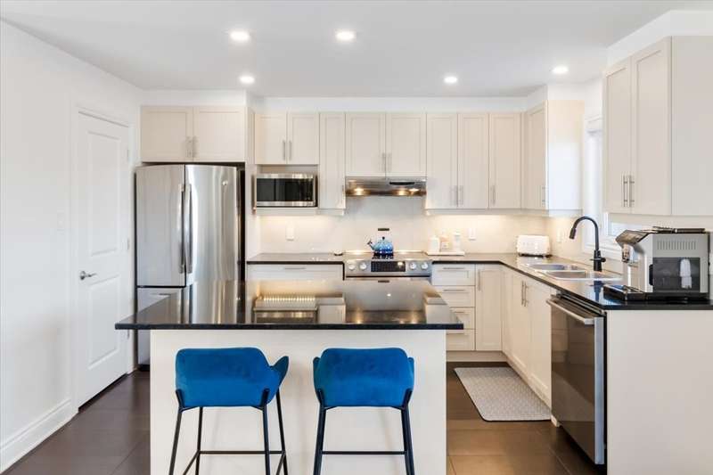 Welcome to this elegant 3+1 bedroom townhouse in the heart of Pointe-Claire! With over 1,800 sq. ft. of living space, this sunlit home boasts a spacious open-concept main floor featuring a stylish kitchen with a large island and bright living and dining areas. Upstairs, find three generously sized bedrooms, including a serene primary suite with a custom-made closet. The finished basement offers a versatile living room that can double as a fourth bedroom, plus a custom laundry room. Complete with beautiful wood flooring, central heating and cooling, and a private 2-car garage. Steps from Fairview Mall, the future REM station, school and parks!